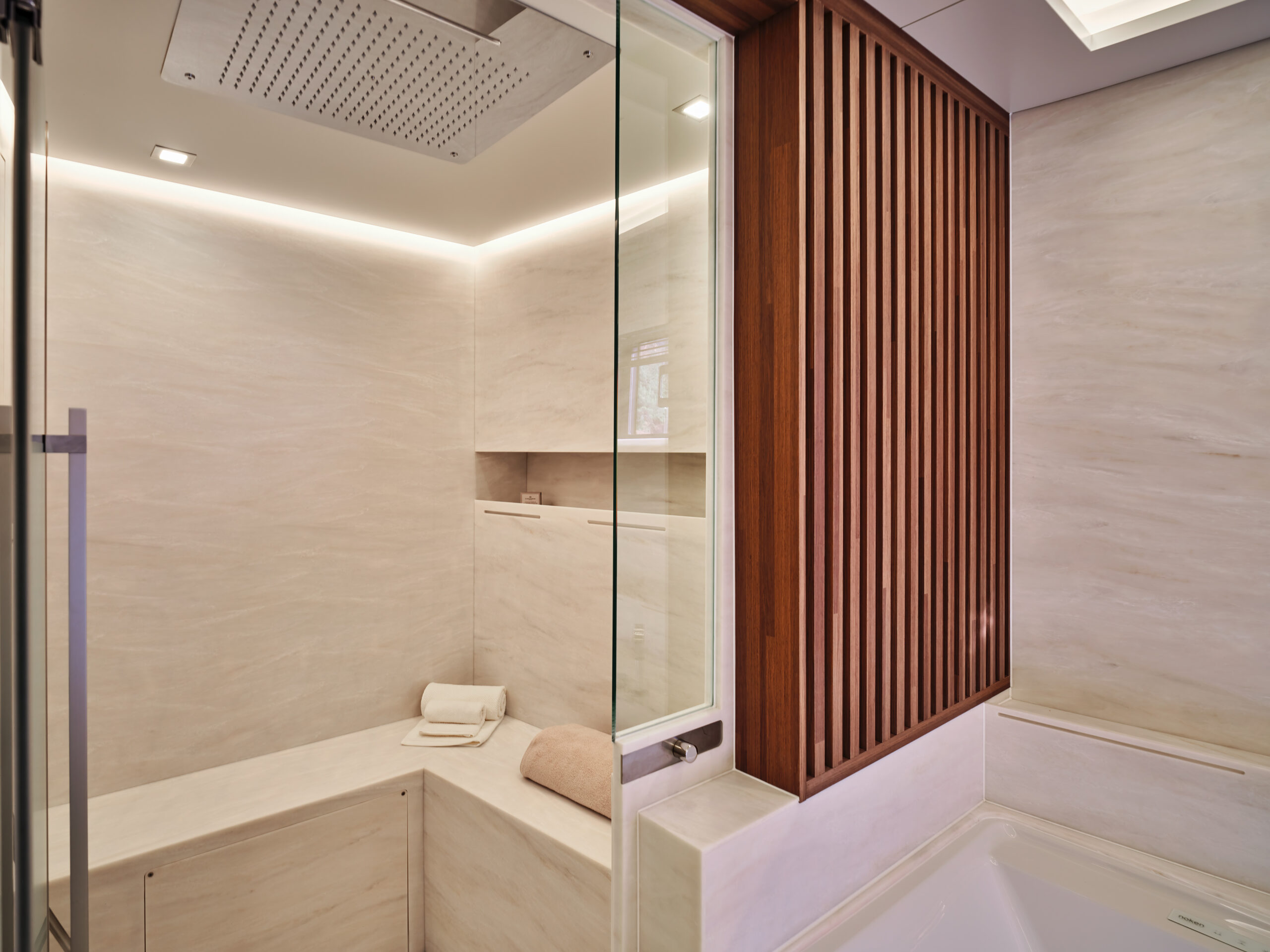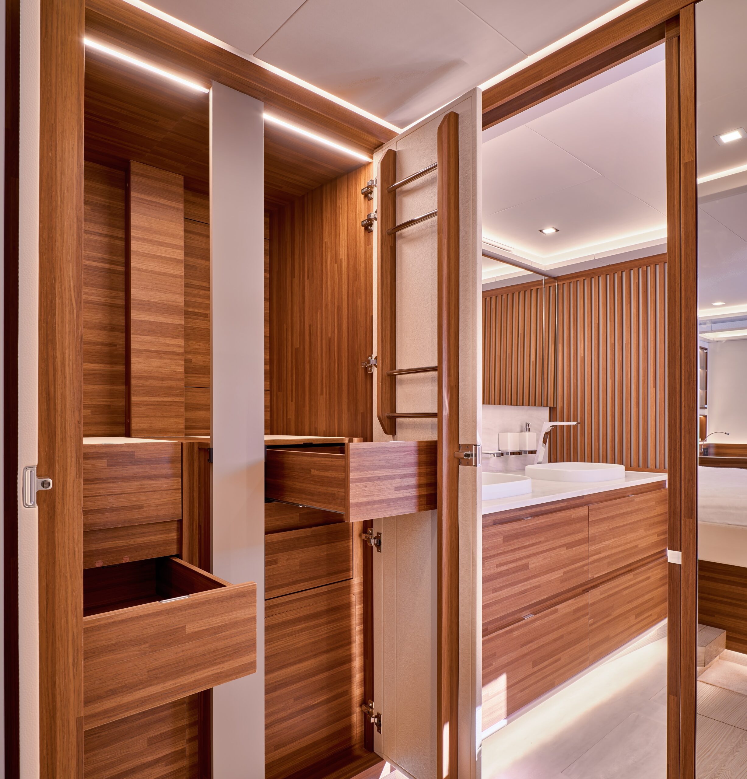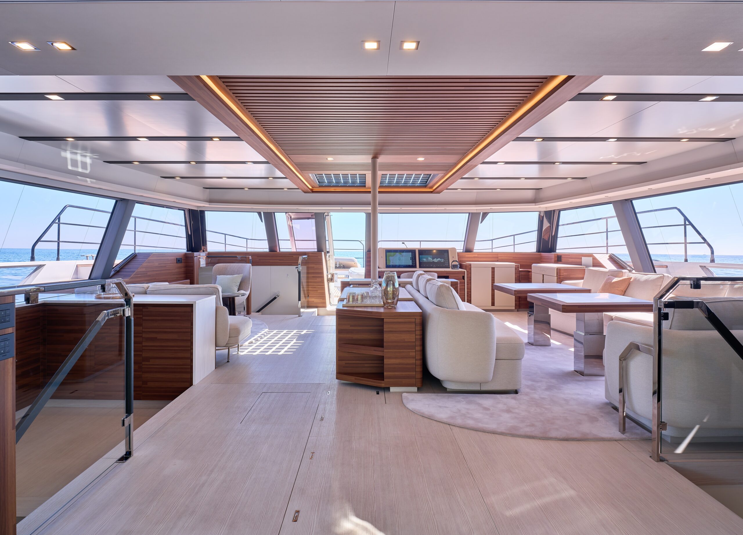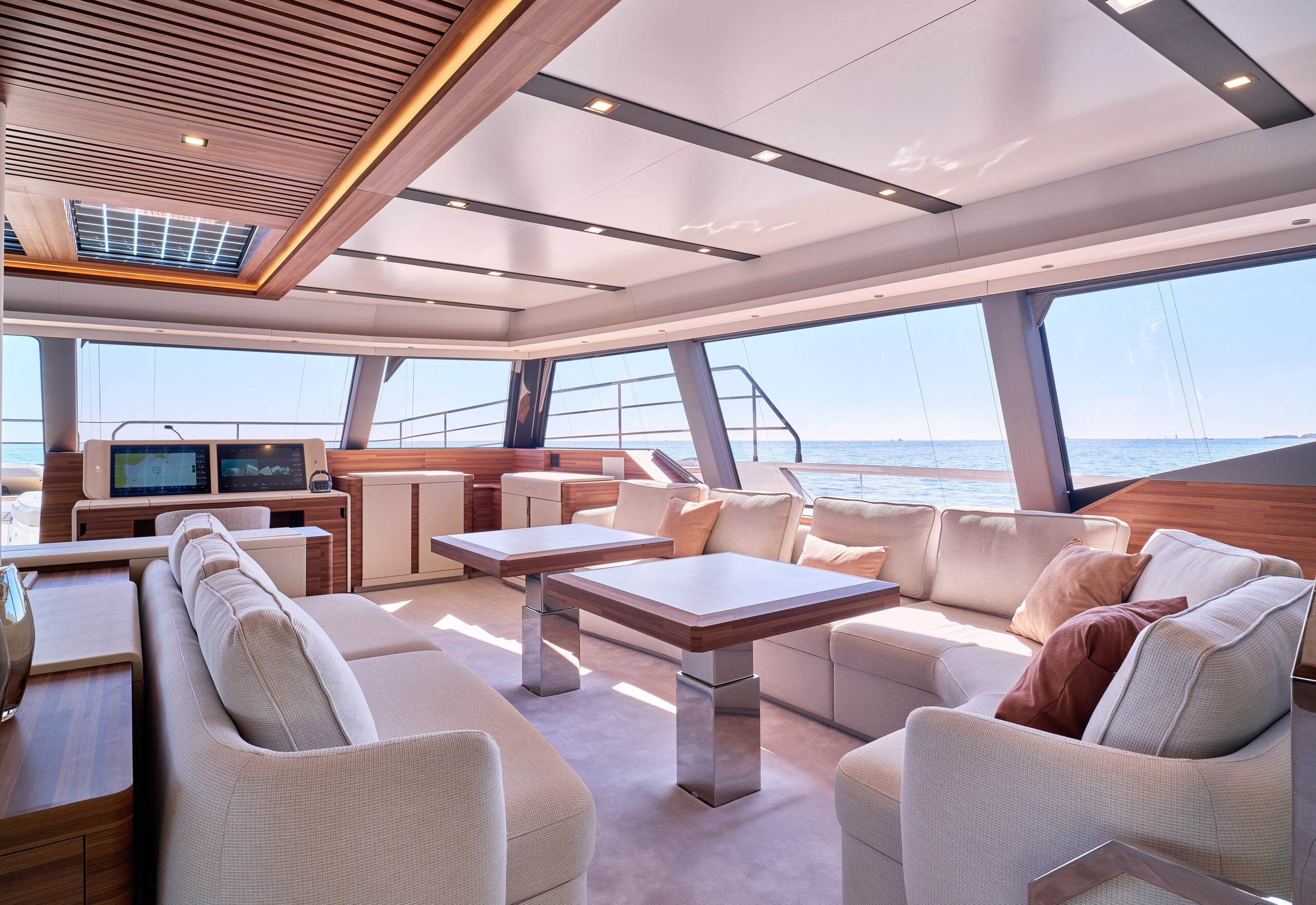 The Power 80’s living spaces are astonishing for their size and range. More than 400m² is available for guests and crew to enjoy, with its extensive choice of precincts delivering superb entertaining areas while also assuring privacy when desired.