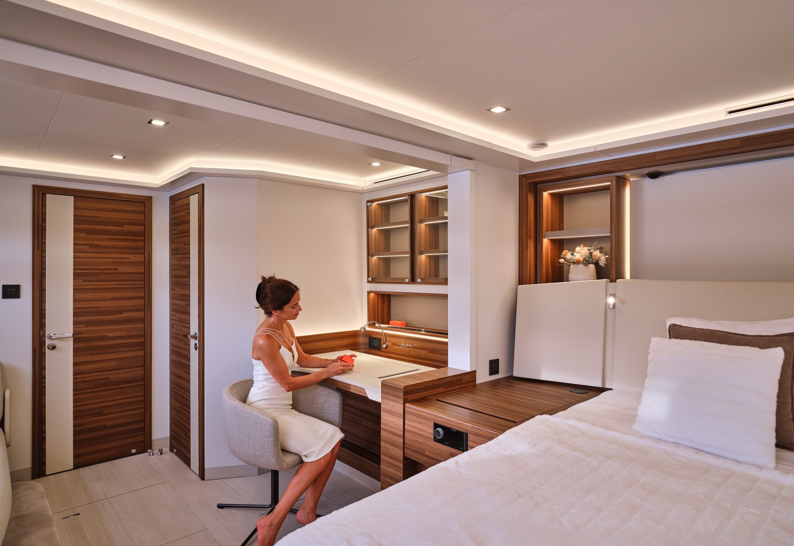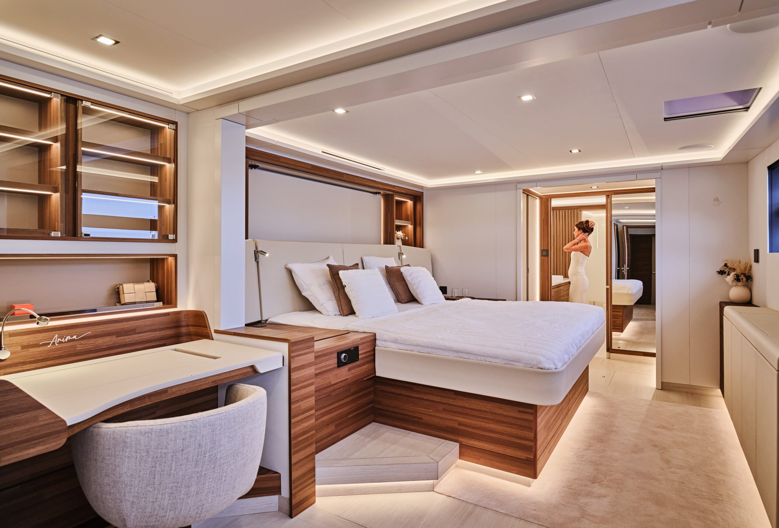 The modular layout accommodates up to 12 guests, or for six to sail in the most exclusive space and luxury. The generous crew quarters are designed to stylishly accommodate five professional crew.
