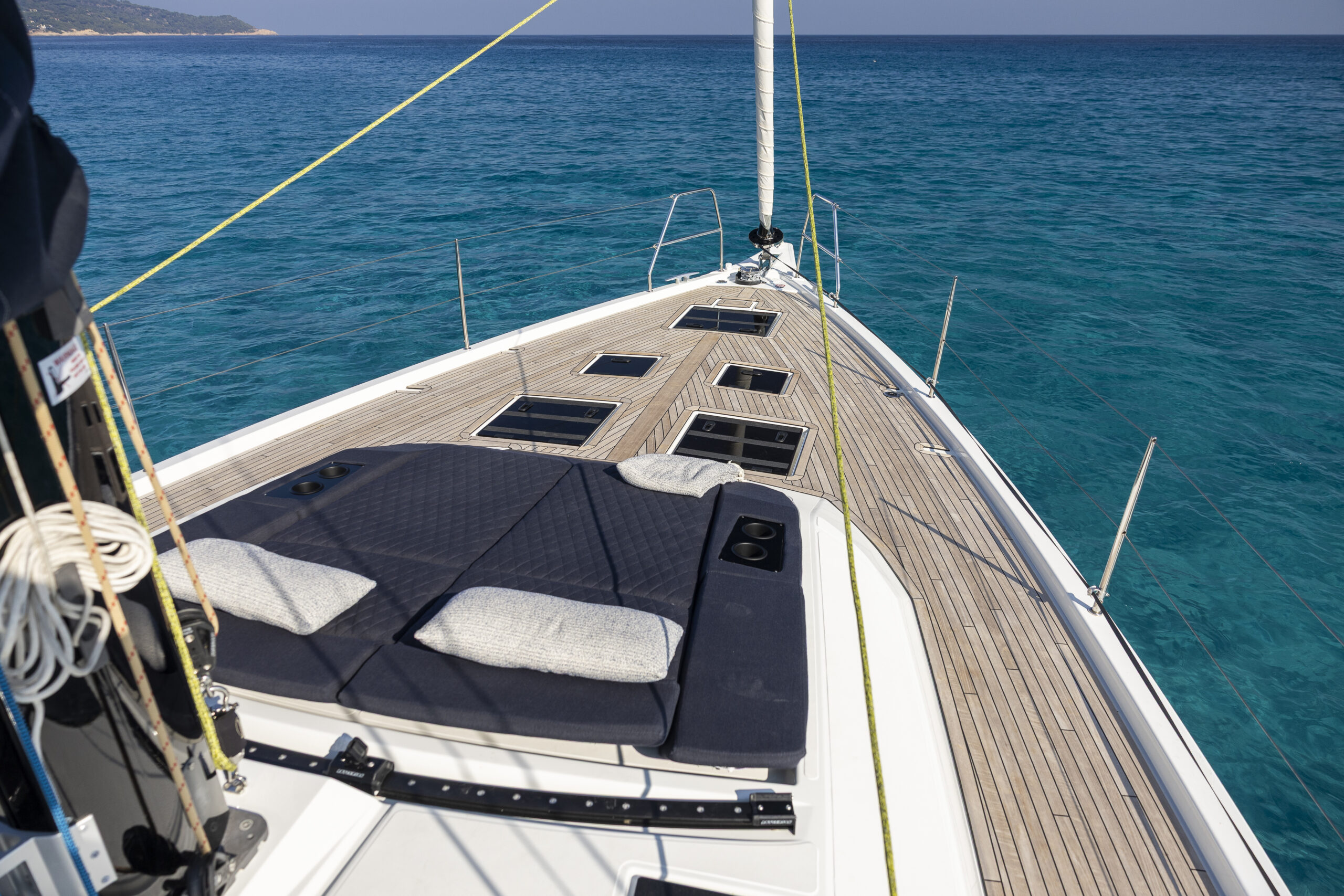 The yacht’s bow features a Sky Lounge Deck at the foot of the mast, equipped with two seats that can be converted into sun loungers, further increasing the relaxation space on deck.