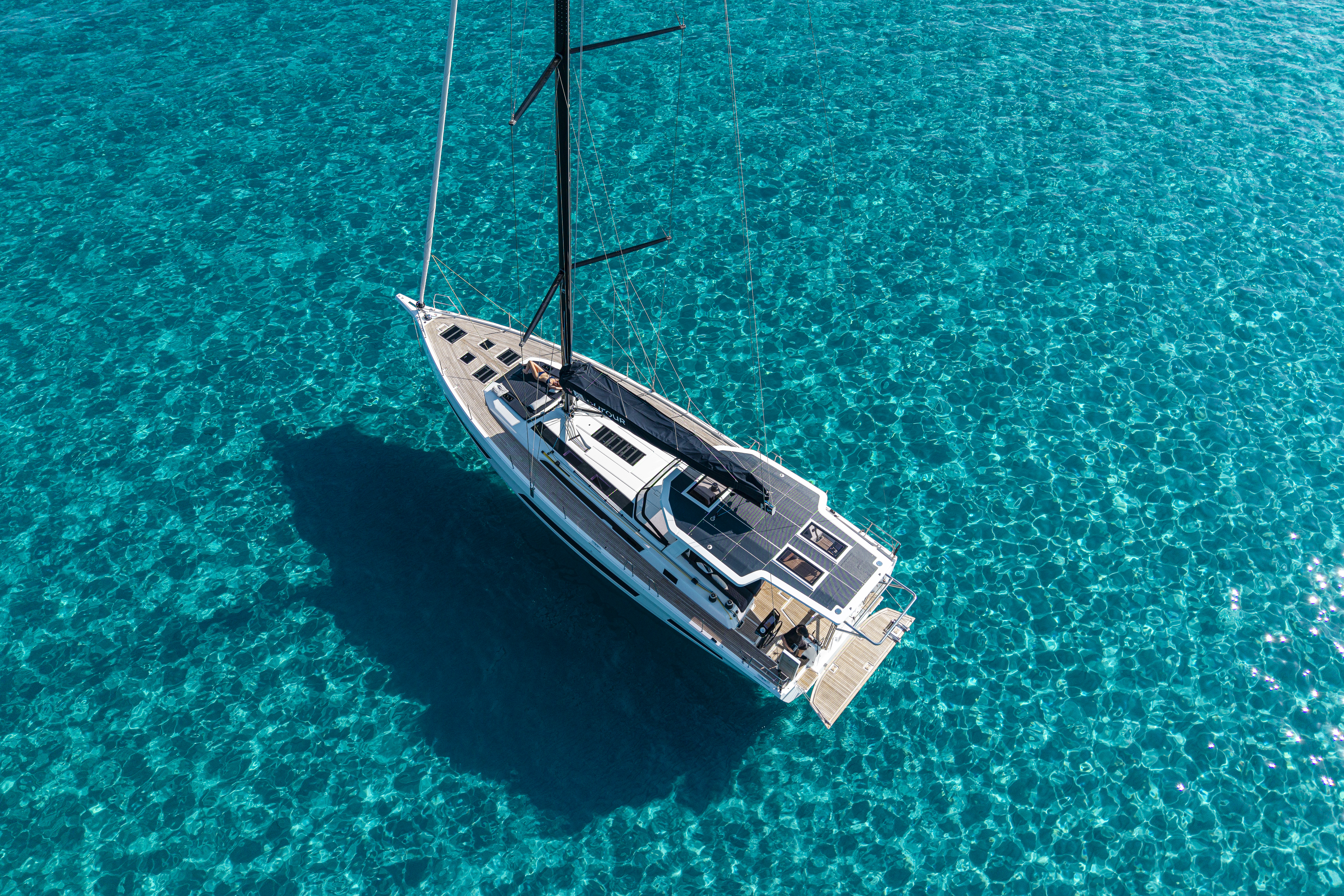 With the option of a deep or shoal-draft keel, the yacht is suited to all the world’s cruising conditions and seabed depths. The hardtop also provides protection from the elements while offering clear visibility of the sails.