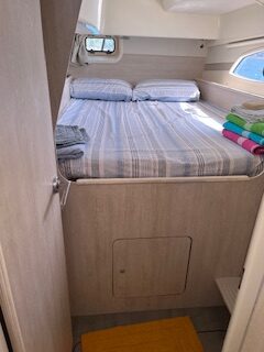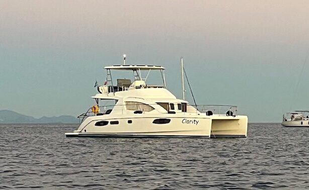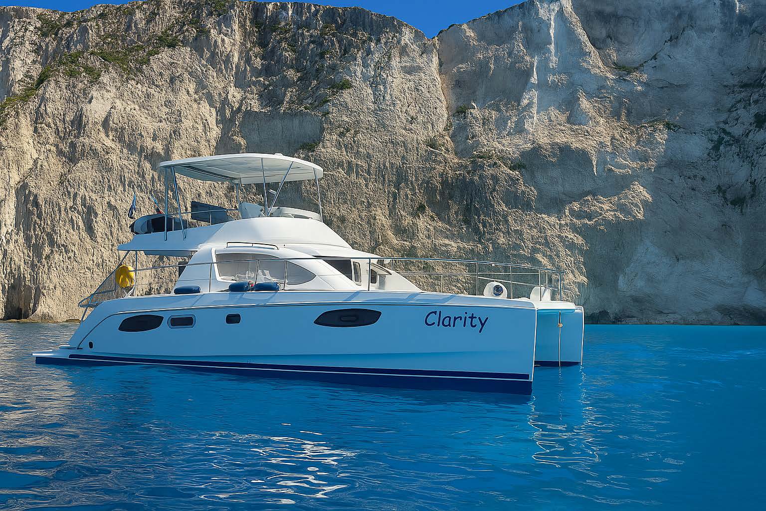 With a length of 12.50m (41.01ft), beam of 6.00m (19.69ft) and shallow 0.90m (2.95ft) draft, Clarity offers easy access to remote anchorages. Powered by twin 150hp Yanmar 4BY3 diesel engines (low hours, recently serviced), she delivers reliable and economical cruising. A recent antifoul (June 2025) and overall upkeep make her truly turnkey.