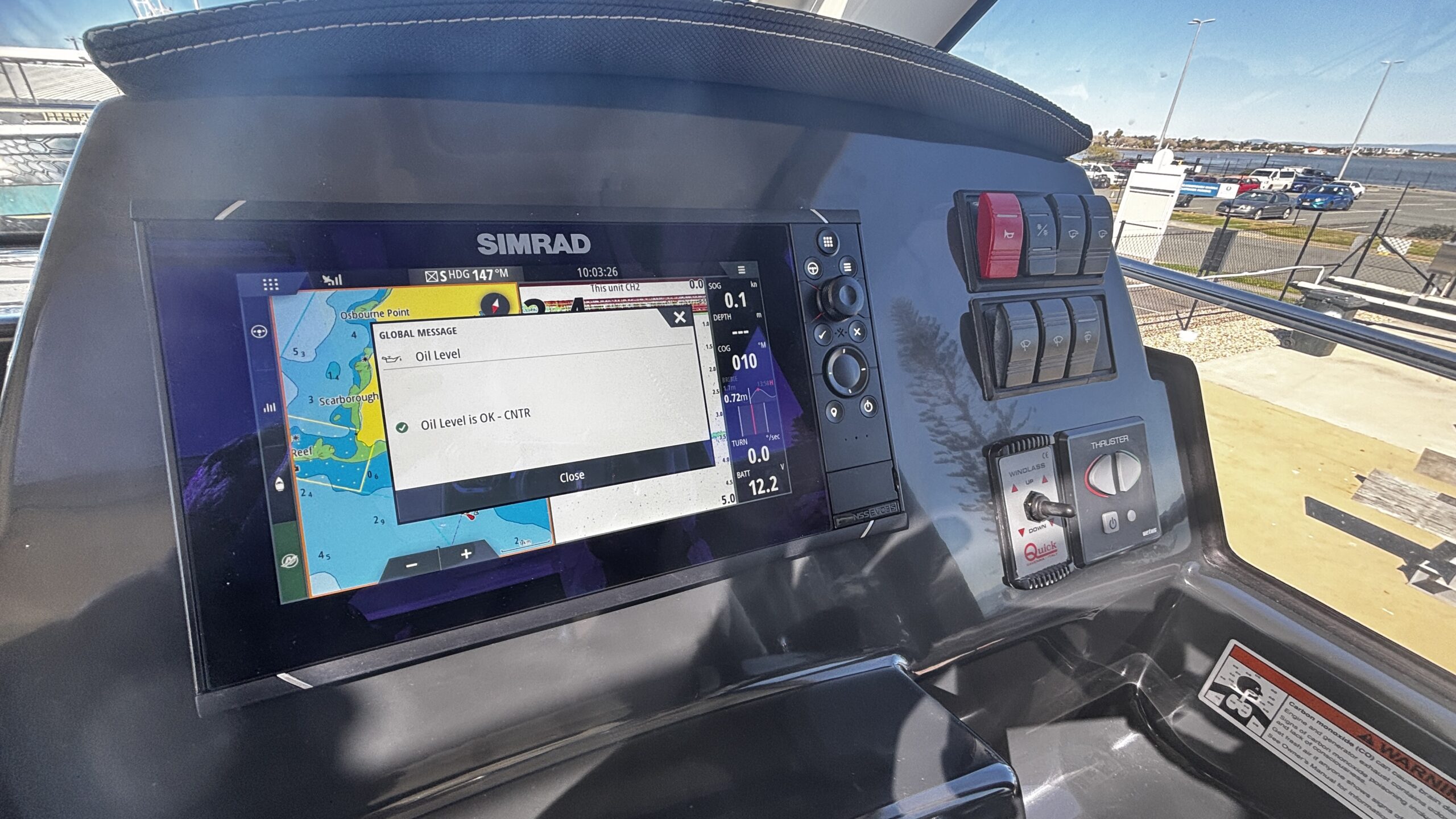 Navigation and electronics are comprehensive, featuring a Simrad NSS EVO3 9″ MFD with Active Imaging 3-in-1, Simrad AP44 autopilot, depth sounder, chartplotter and VHF radio. These systems provide reliability and ease of operation whether cruising coastal or offshore.
