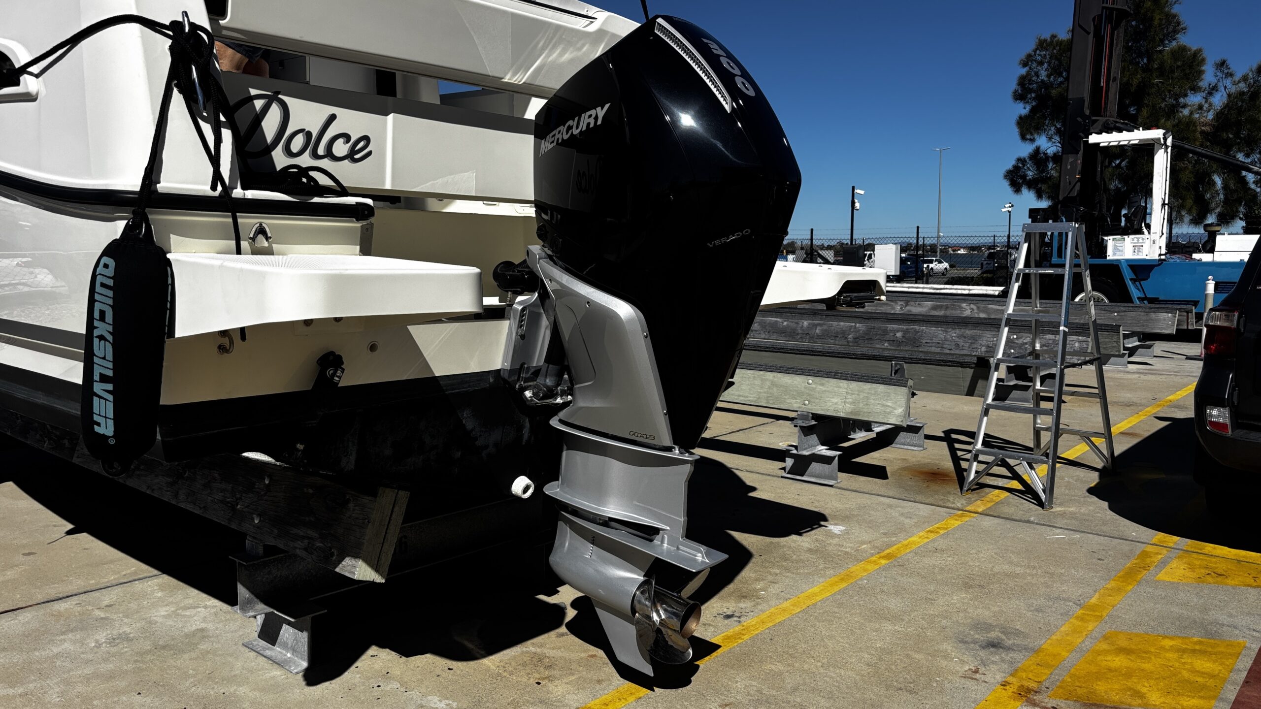 Powered by a 300hp Mercury Verado 4-stroke engine with only 55 hours of use, Dolce delivers smooth and responsive handling with a cruising speed of 22 knots and a maximum speed of 27 knots. Mercury Active Trim Tabs enhance stability and fuel efficiency, ensuring optimal comfort across a range of conditions.