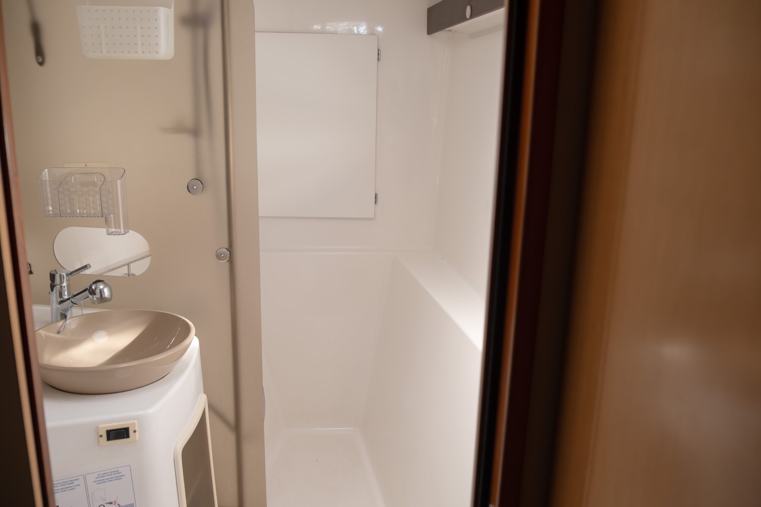 The well-appointed galley provides excellent storage and bench space, while the cockpit is designed for alfresco living, featuring a large dining table and easy access to the helm and decks. Performance under sail is safe and efficient, with all lines led aft for simple short-handed handling.