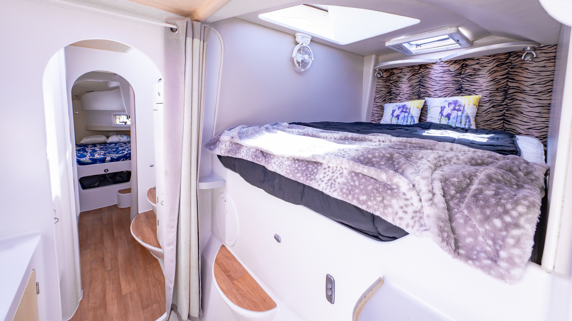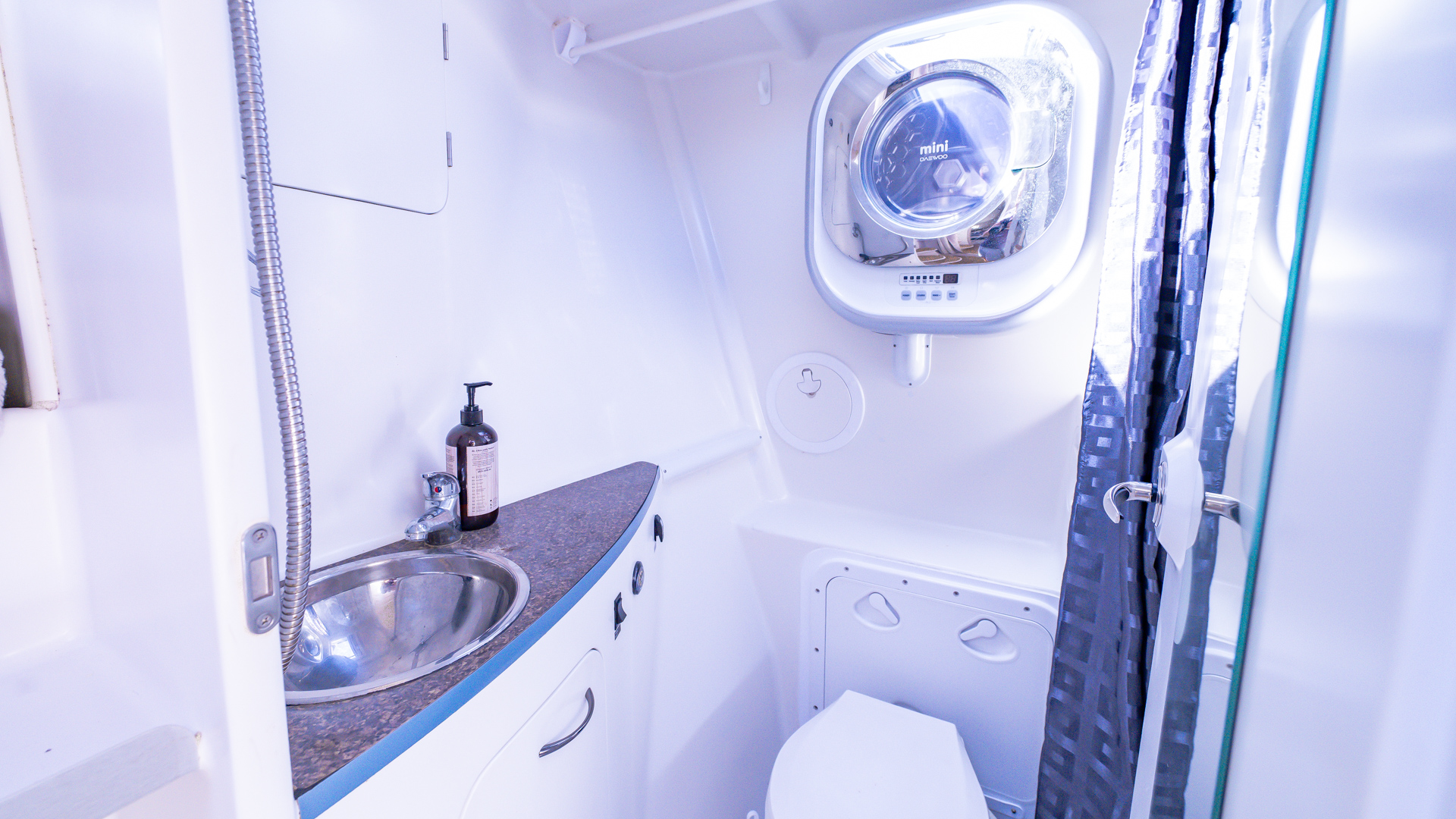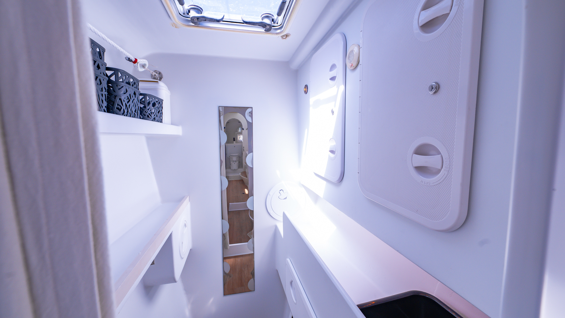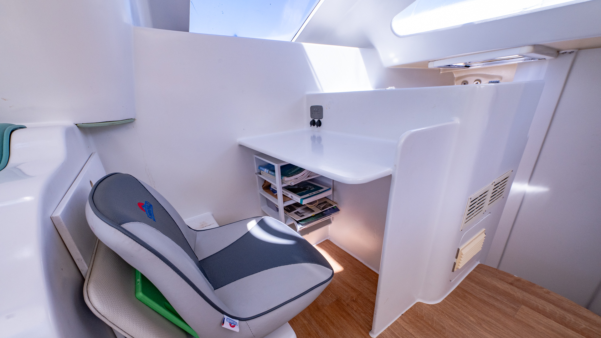 Powered by twin Yanmar 3YM20 diesel engines (22hp each) with saildrives and Gori folding propellers, Siva cruises comfortably at 8–9 knots and can achieve impressive speeds under sail. Both engines have approximately 1,000 hours. Her well-considered electrical system includes AGM house batteries, a 60A CTEK charger, 1200W inverter, Honda EU10i generator and a substantial 2,000W solar array. With 300L of fuel and an impressive 1,400L water capacity, she is set up for extended, self-sufficient cruising.