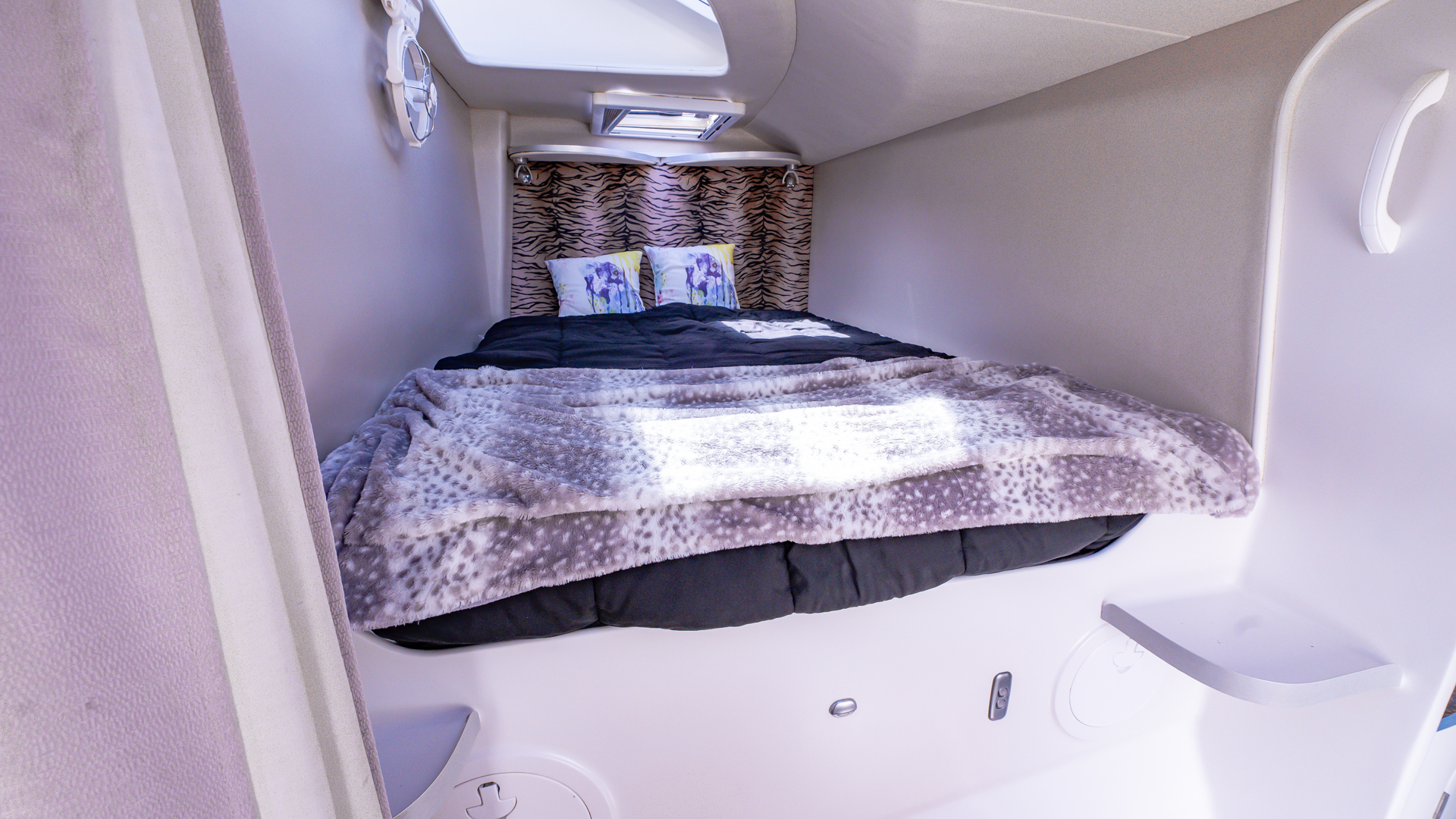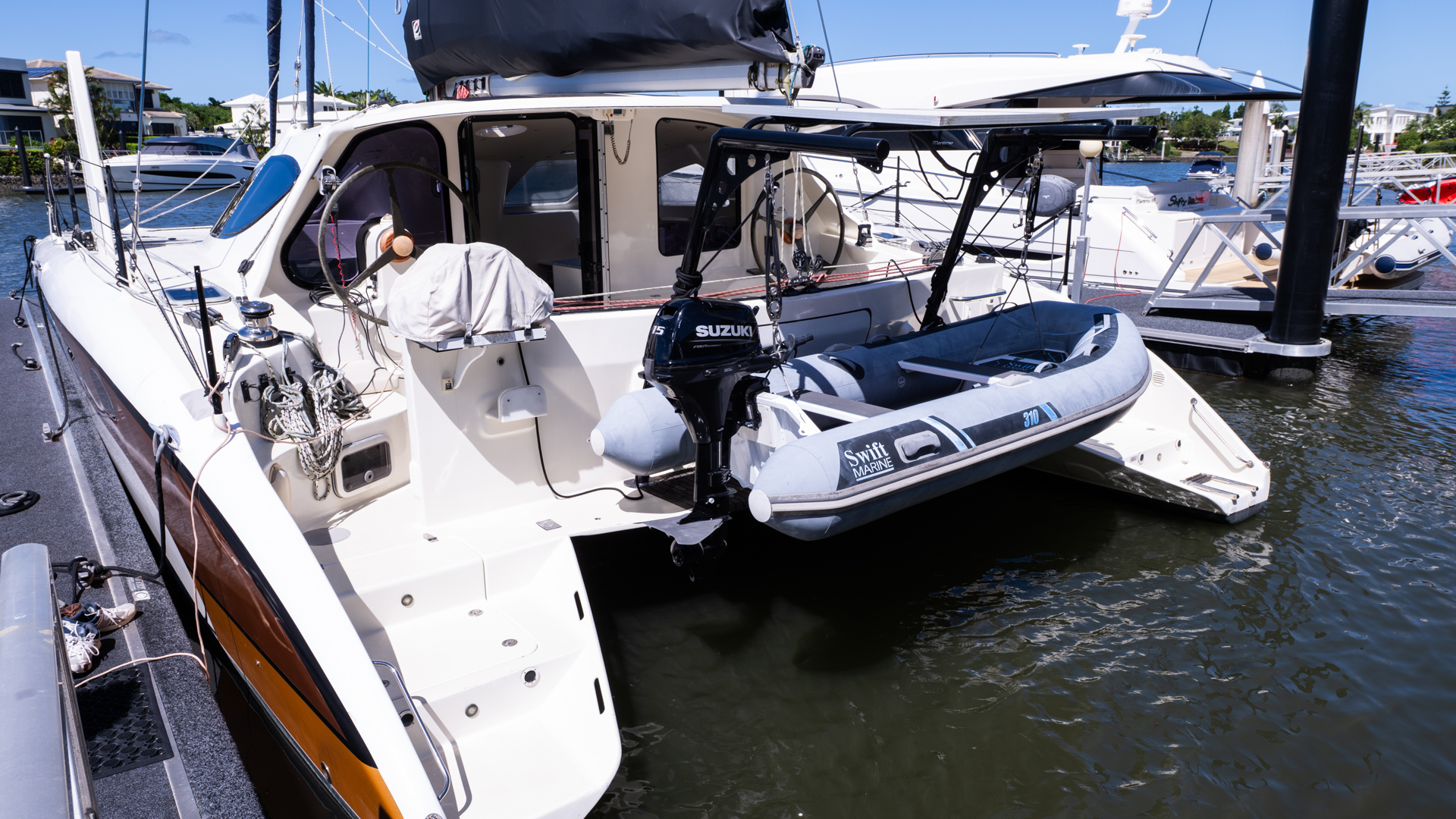 On deck, Siva is equally well appointed with a full cockpit shade, BBQ, davits supporting a Swift Marine 310 tender with Suzuki 15hp outboard, and reliable anchoring gear including Manson anchors and an Anchorlift windlass.