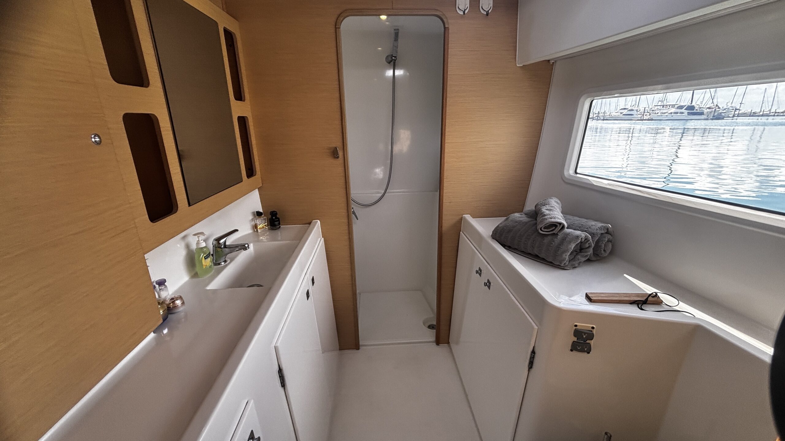 Spirit of Catherine, a beautifully maintained 2016 Lagoon 42 Owner’s Version that perfectly balances performance, luxury and self-sufficiency. This highly sought-after three-cabin layout is ideal for couples or families seeking a capable liveaboard or long-distance cruising catamaran.