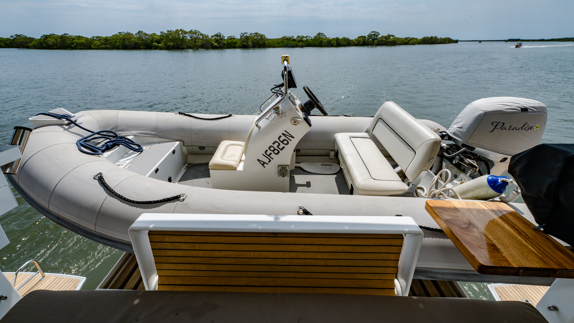 Comfort and practicality extend throughout, with air conditioning, a full new bimini and flybridge enclosure, digital switching with remote system access, and the inclusion of a Starlink system for reliable communication. Her 3.9m centre console tender sits on a hydraulic platform for effortless launching, while twin watermakers and twin autopilots provide valuable redundancy for extended cruising.