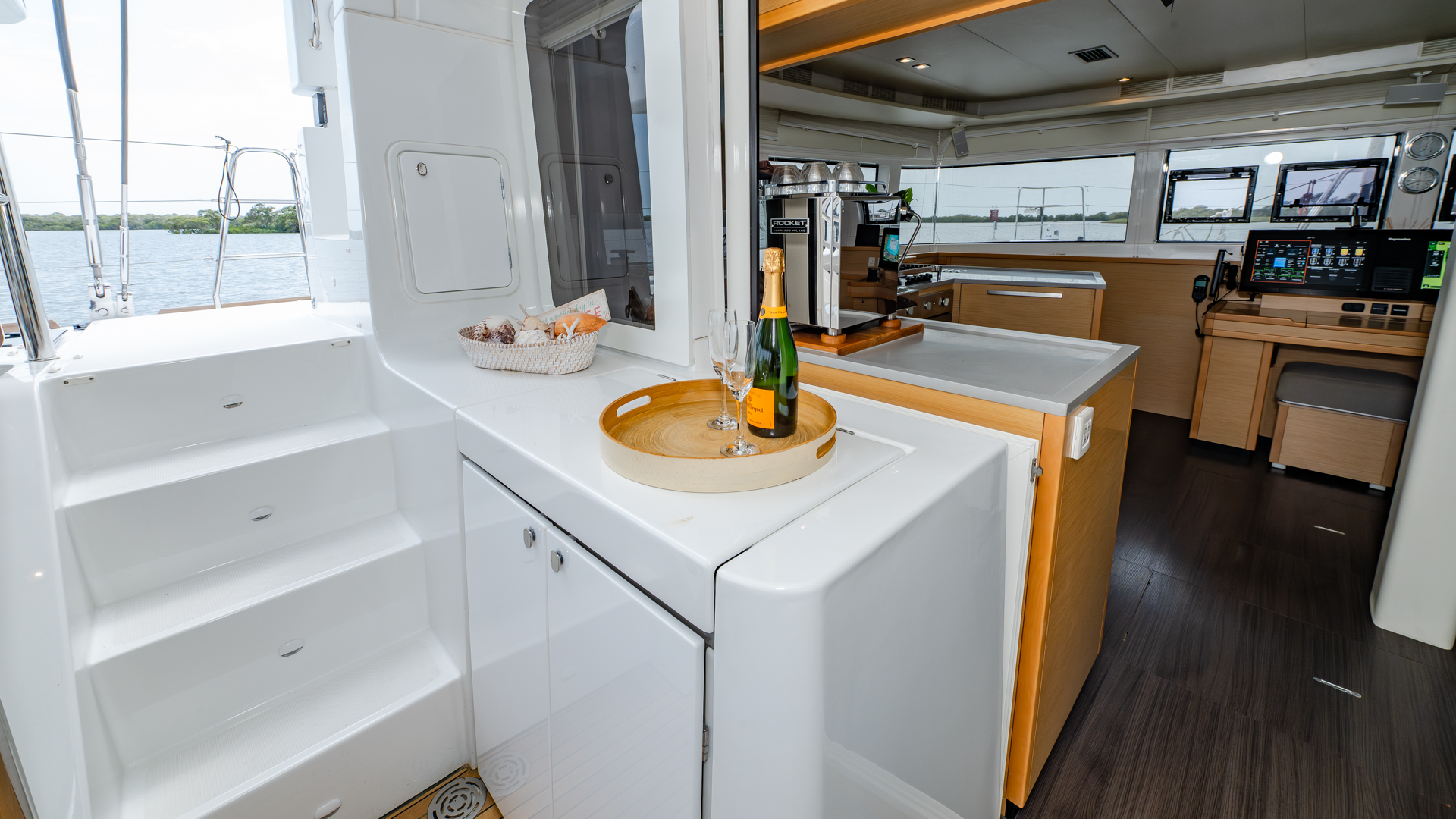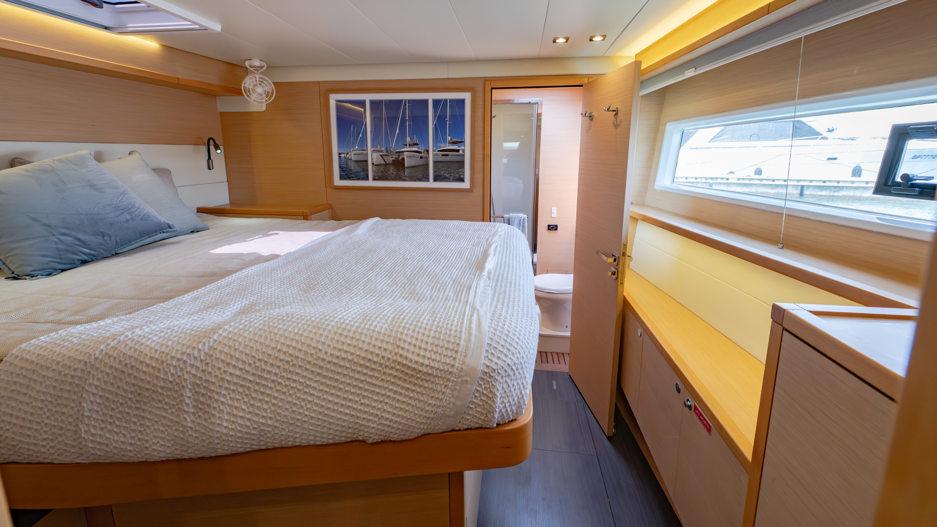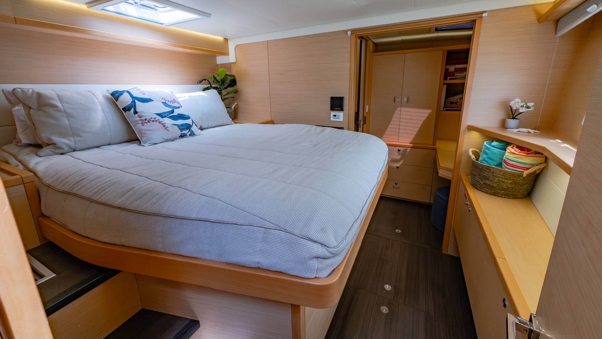 As a long-distance cruising catamaran, Paradise is without doubt one of the finest examples on the market. Her clever four-cabin layout includes a spacious owner’s suite, while her upgraded Yanmar 4JH80 engines with SD60 saildrives deliver reliable and efficient performance. She features twin helm stations with ZF electronic controls, top-of-the-line Raymarine instrumentation, and a FLIR night-vision camera for added safety offshore.