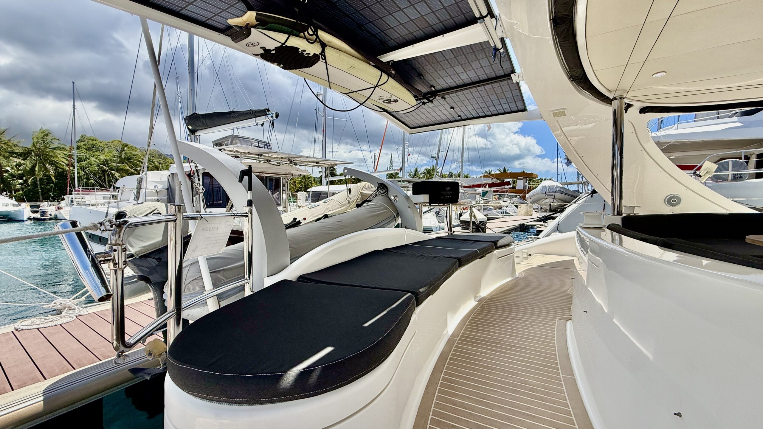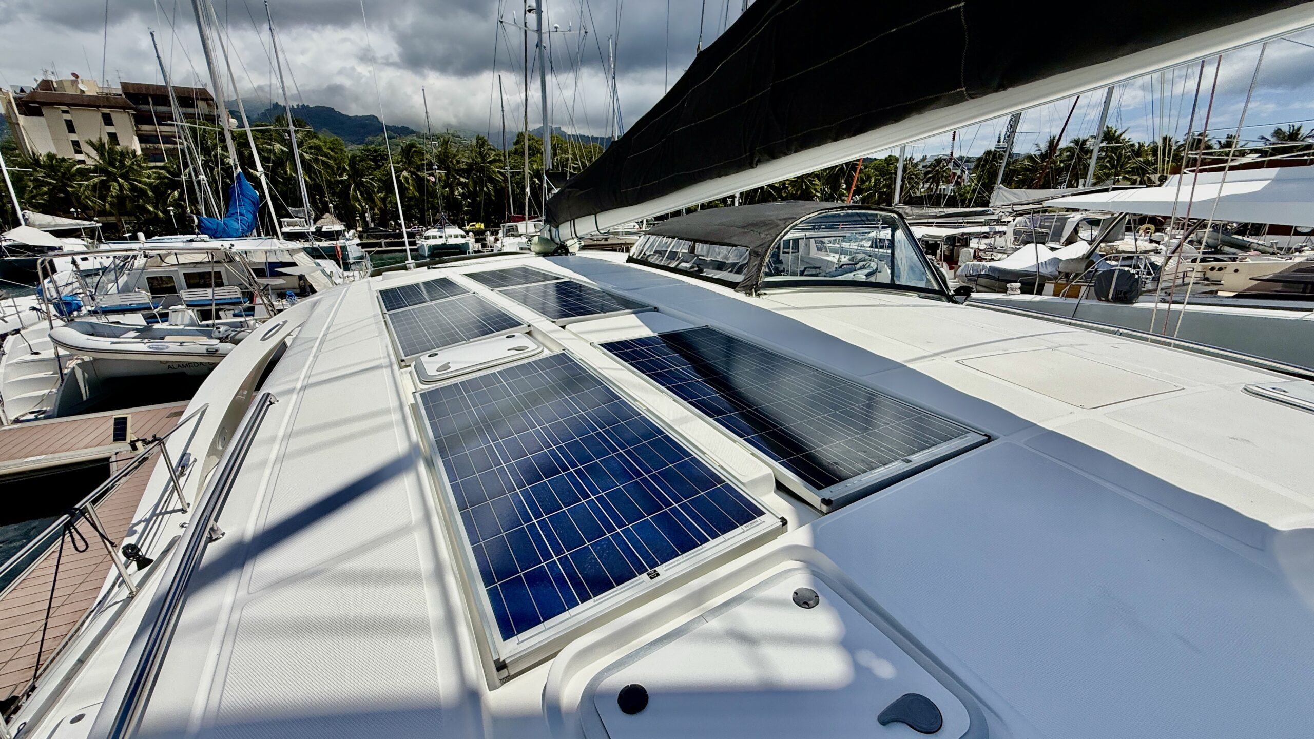 Her condition and systems have been maintained to an exceptional standard with continuous upgrades across all major categories. Key enhancements include a comprehensive Mastervolt lithium house bank with energy management, Starlink communications, a Garmin 7616 navigation suite with autopilot and radar integration, nearly 2400W of solar across davits and cabin top, a Fischer Panda generator, Cruise RO 40 GPH watermaker and a powerful tender and davit system with electric winches. Safety gear has been consistently kept up to date, including serviced fire extinguishers and supplemental navigation and communication equipment. A new North Sails mainsail was fitted in October 2025.