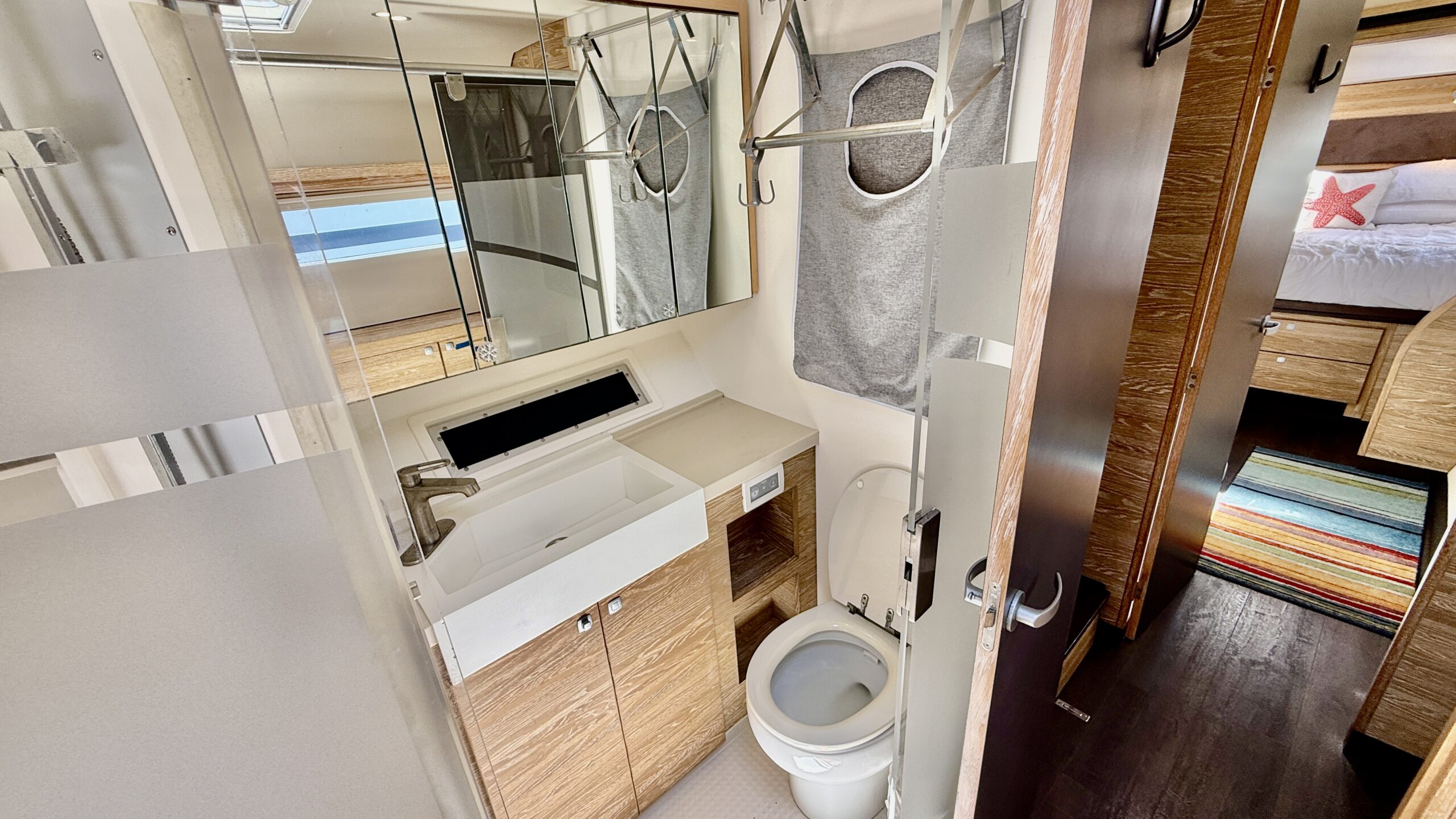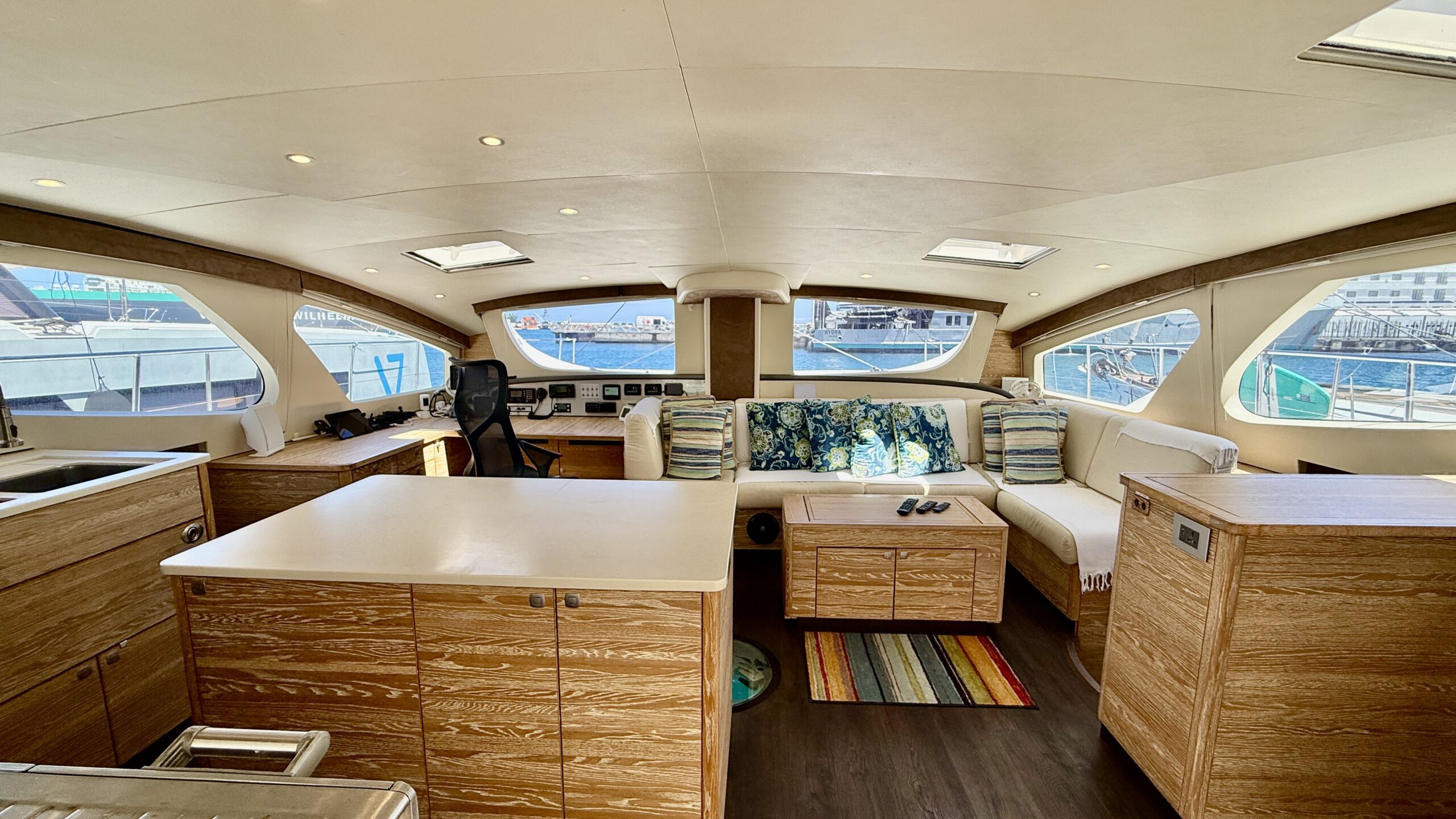 Originally shipped from Cape Town, South Africa to Road Town, BVI in July 2017, Sea Larks began her cruising life with an impressive itinerary. She was sailed to the east coast of the United States for her closing in August 2017 before continuing north later that year to appear in the 2017 Annapolis Boat Show. From November 2017 through June 2018 she cruised the Bahamas, then continued exploring the eastern seaboard before returning to the BVI in November 2018 to enjoy a season of Caribbean cruising.