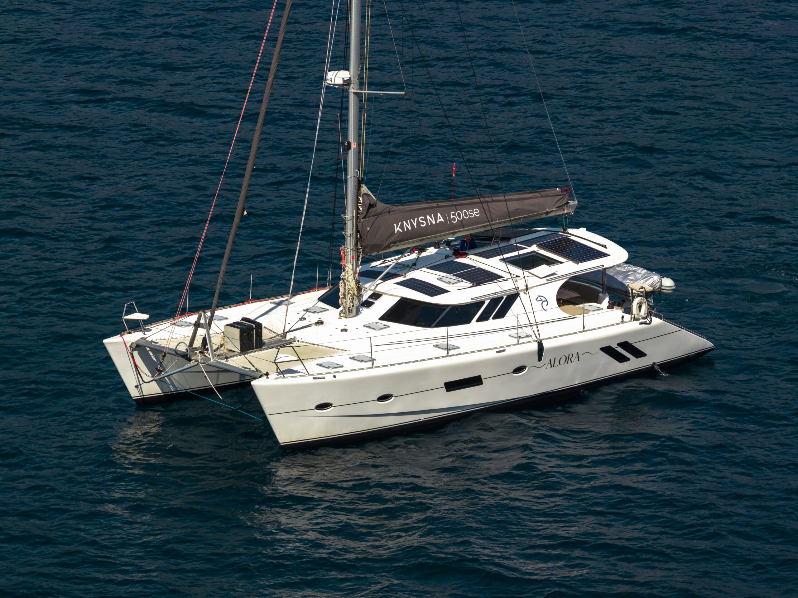 Alora is a 2023 Knysna 500 SE, commissioned and first launched in early 2024, presenting as a near-new, owner’s version bluewater cruising catamaran. Built by Knysna Yacht Company, she showcases the brand’s renowned combination of refined craftsmanship, striking design and impressive sailing performance.
