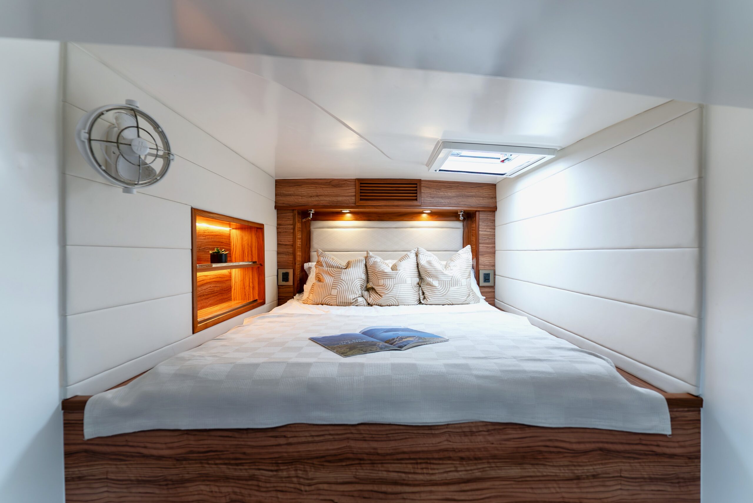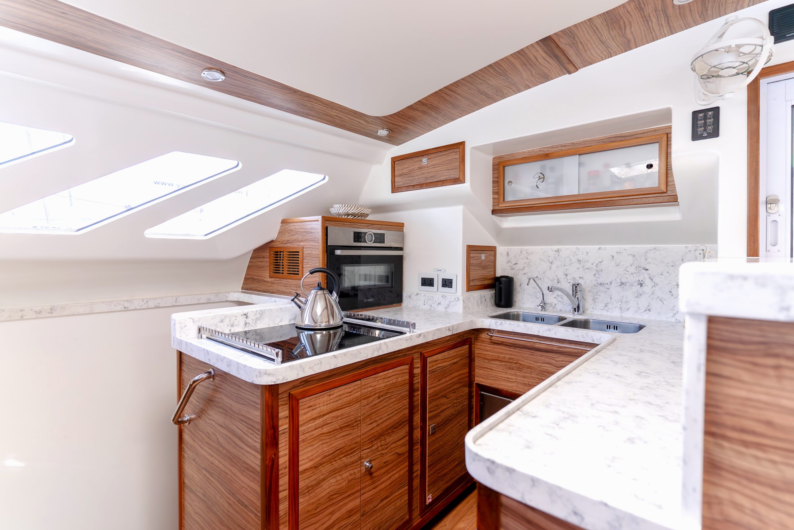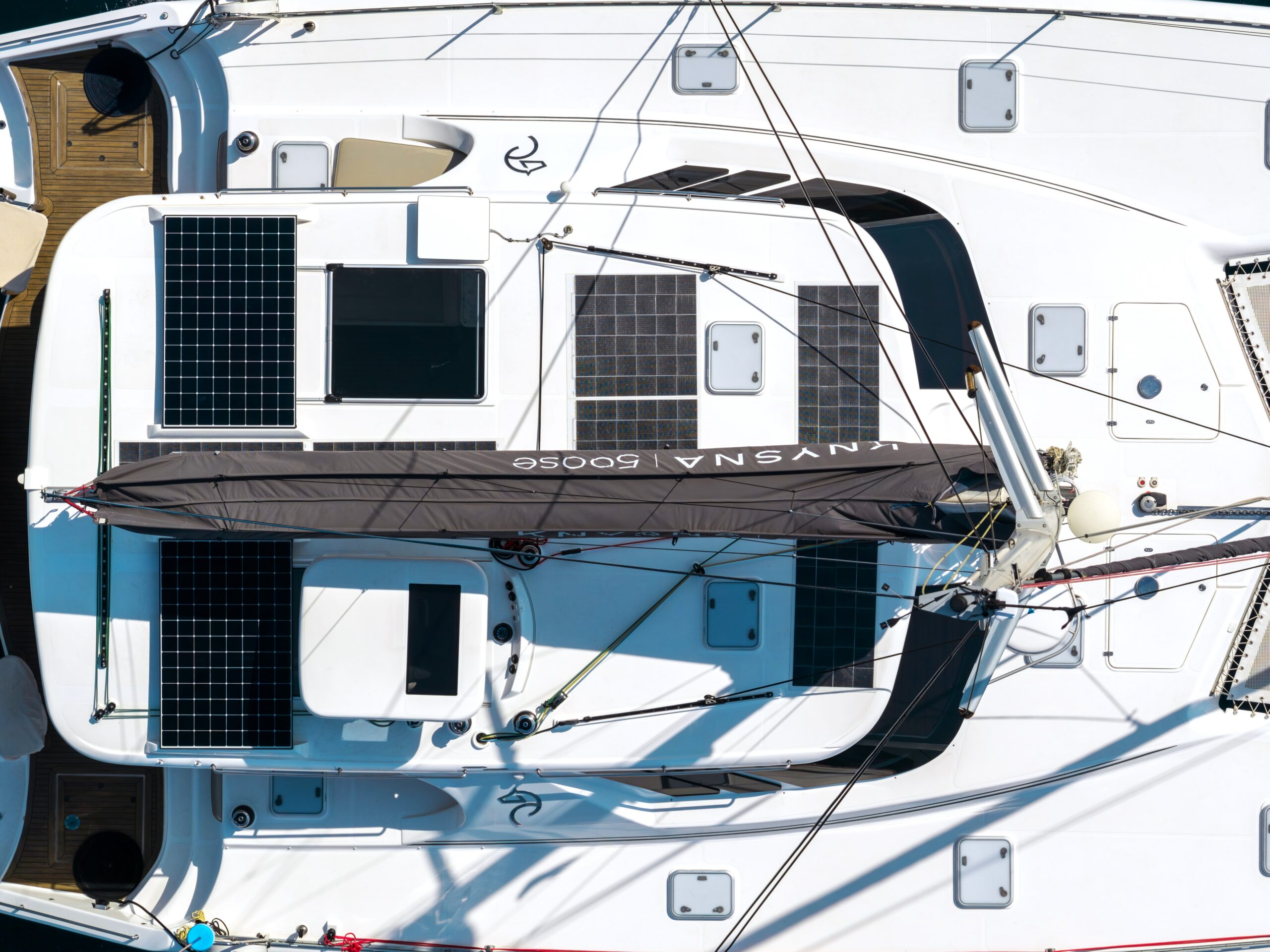 Energy independence is a standout feature, with an advanced Integrel Solutions system delivering exceptional onboard power, supported by nearly 2000W of solar capacity — ideal for extended off-grid cruising.