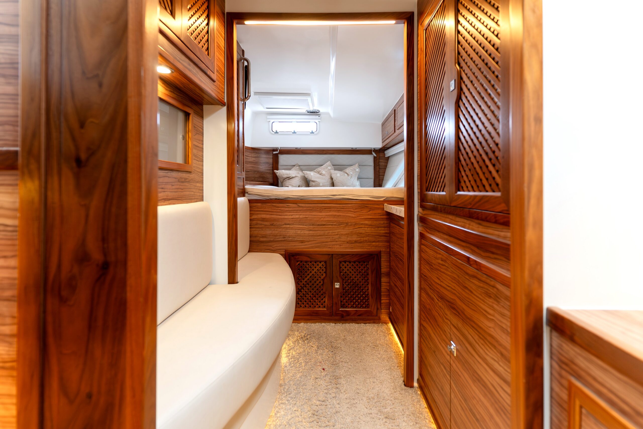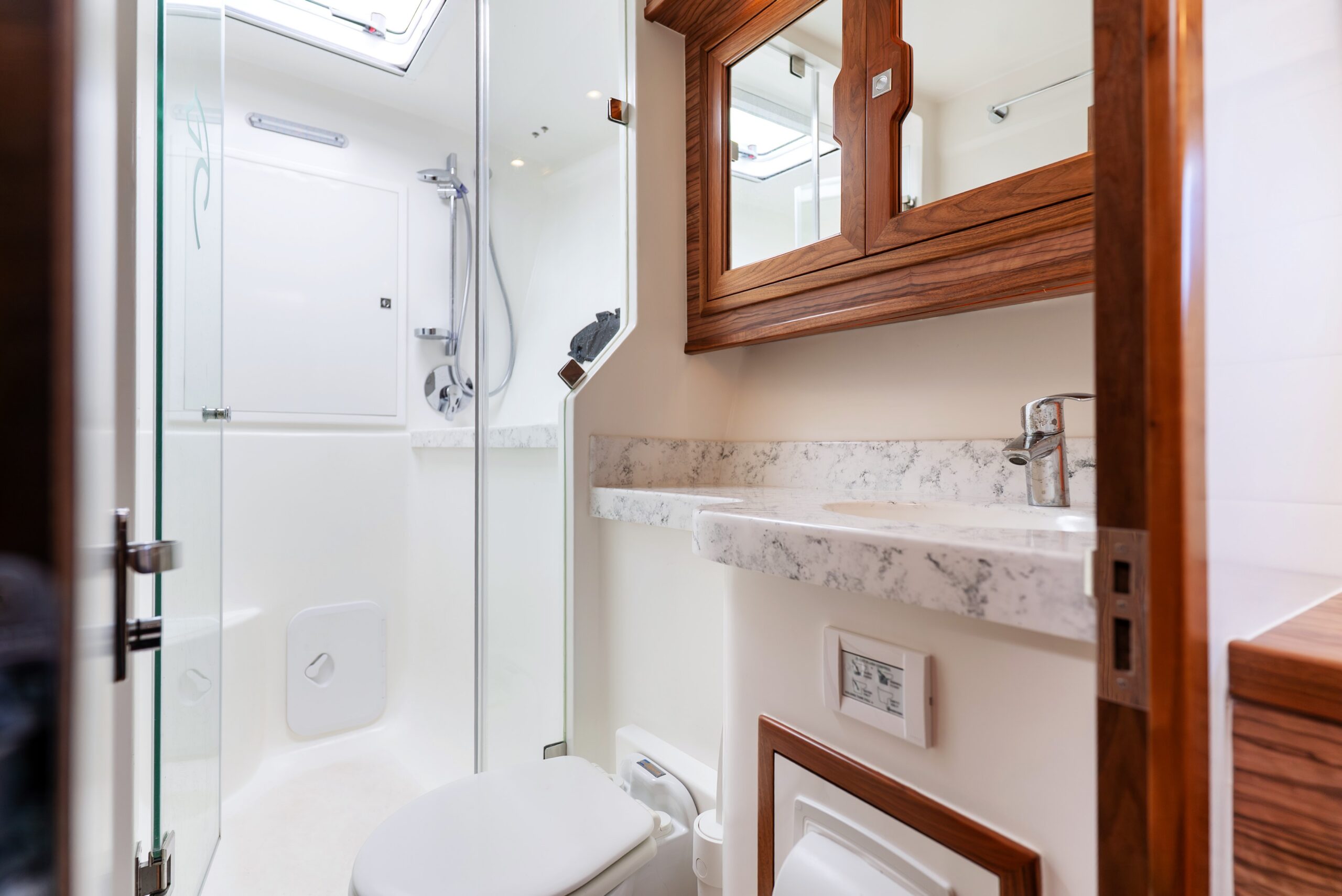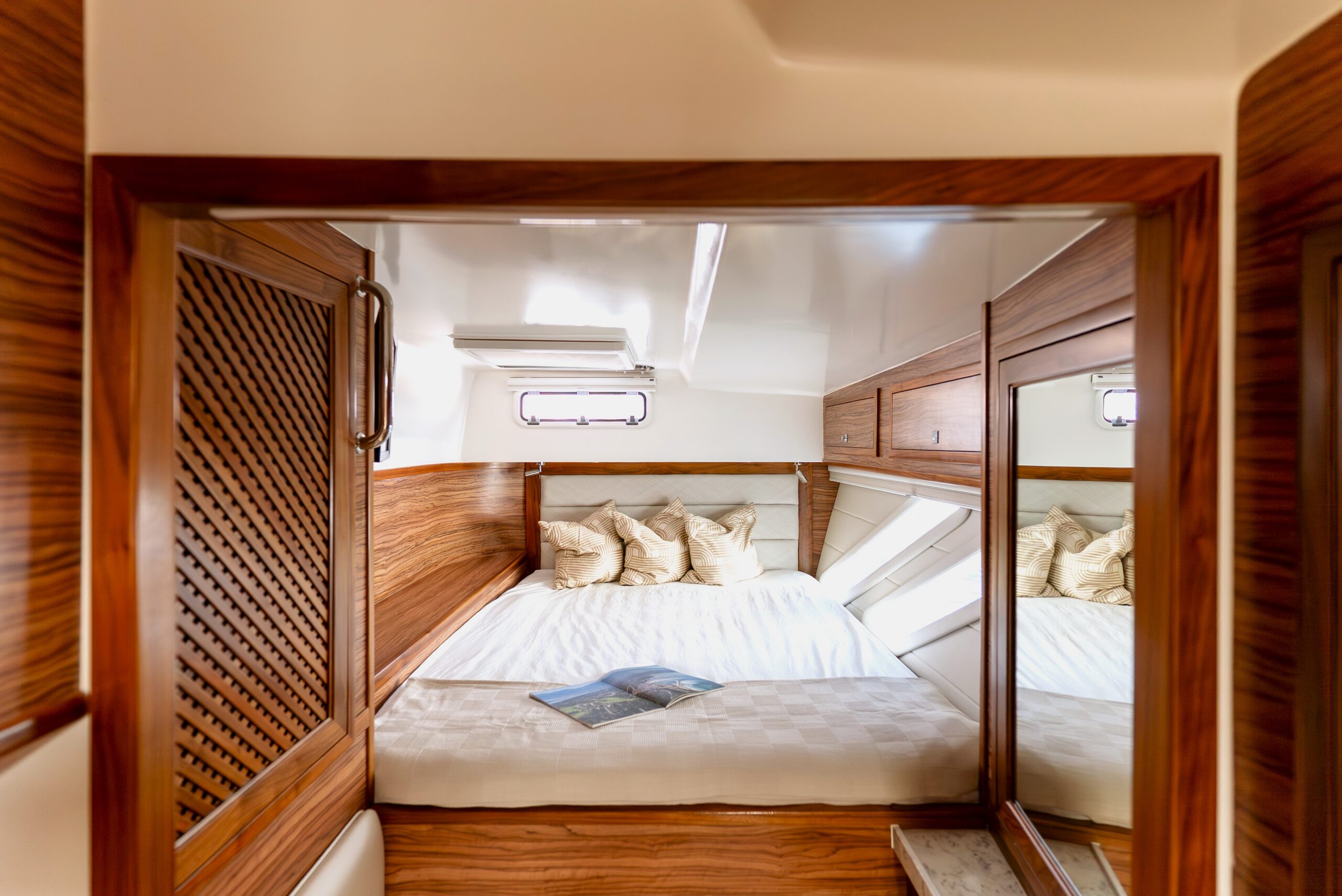 Energy independence is a standout feature, with an advanced Integrel Solutions system delivering exceptional onboard power, supported by nearly 2000W of solar capacity — ideal for extended off-grid cruising.