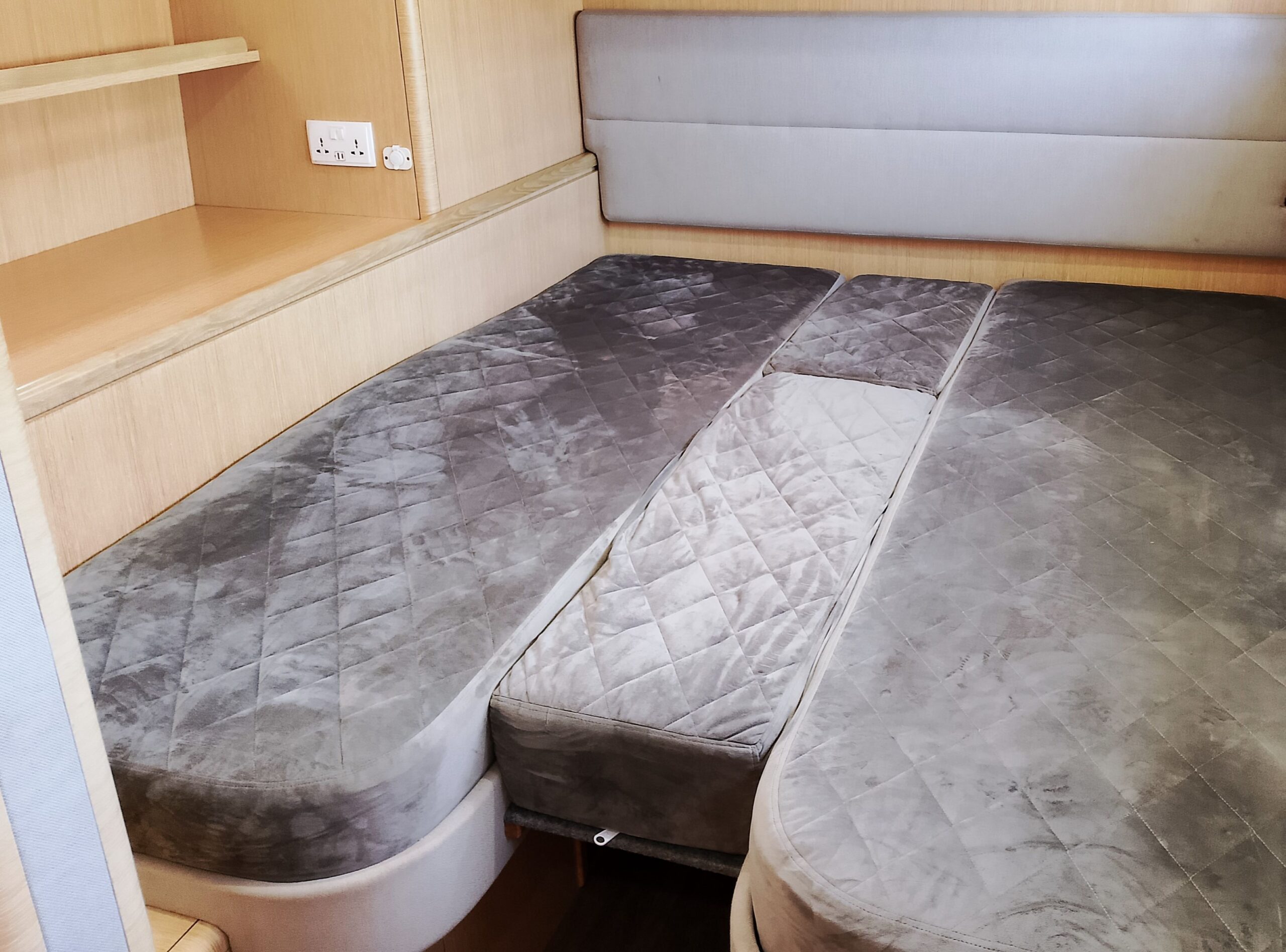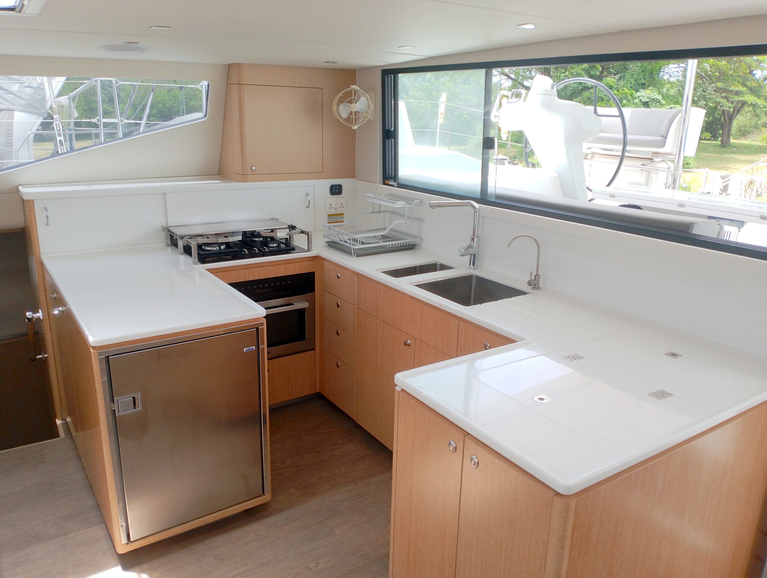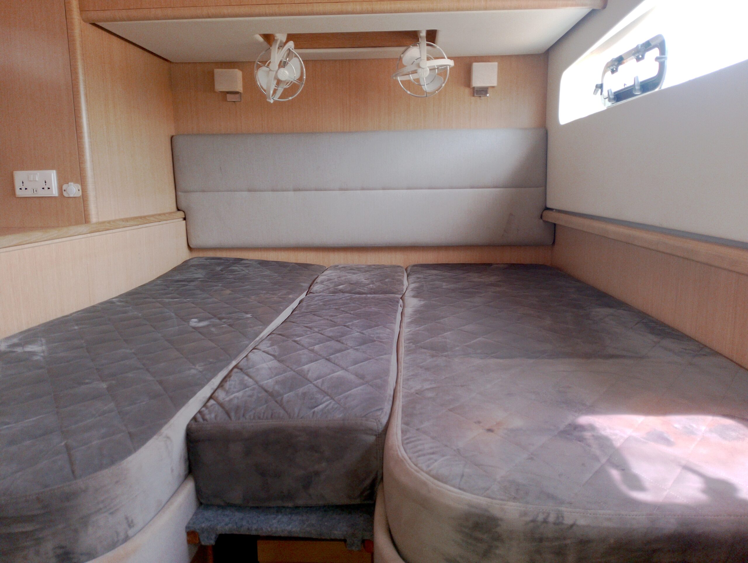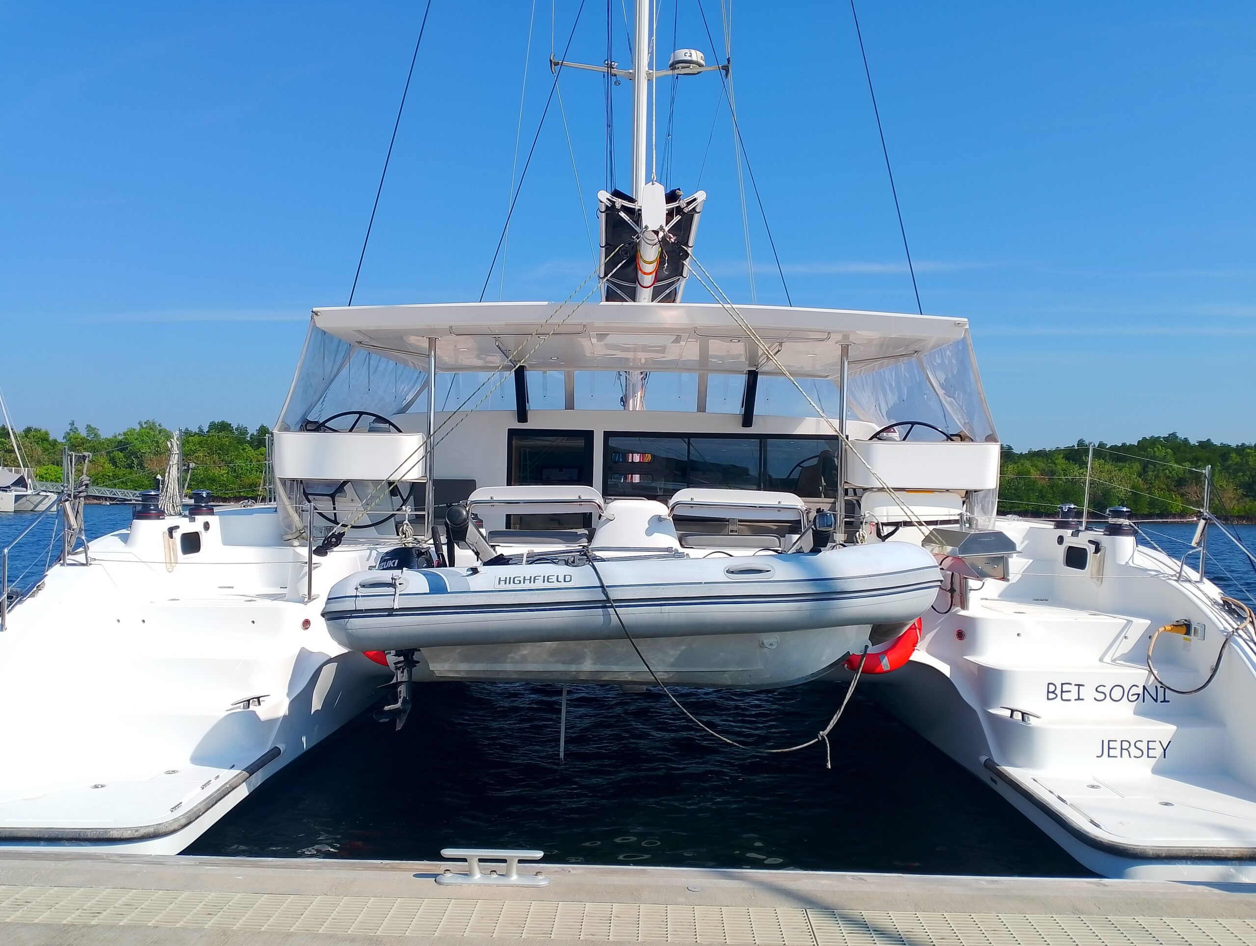 Bei Sogni features a thoughtfully designed owner’s layout, dedicating the entire starboard hull to a private suite. This includes a queen-sized island bed, generous storage, and a stylish en-suite bathroom with walk-in shower. The port hull accommodates guests in two well-appointed cabins with a shared head, providing comfort for extended cruising with family or friends.