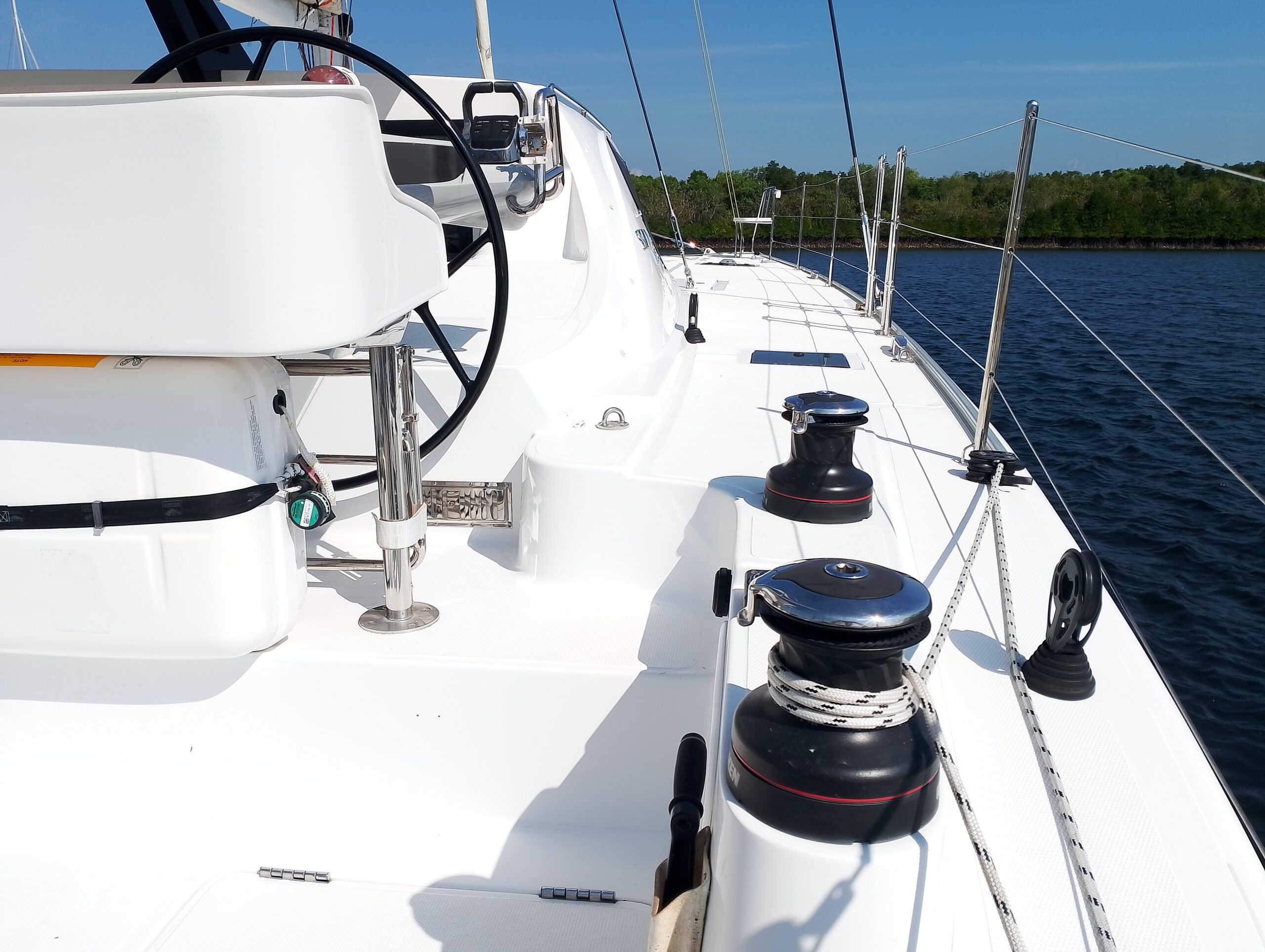 Twin protected helm stations offer excellent visibility and control. All sail controls are led aft for easy shorthanded sailing. Powered by upgraded 80hp Yanmar diesels, Bei Sogni is capable and reliable, supported by 750 litres of fuel and 658 litres of freshwater storage.