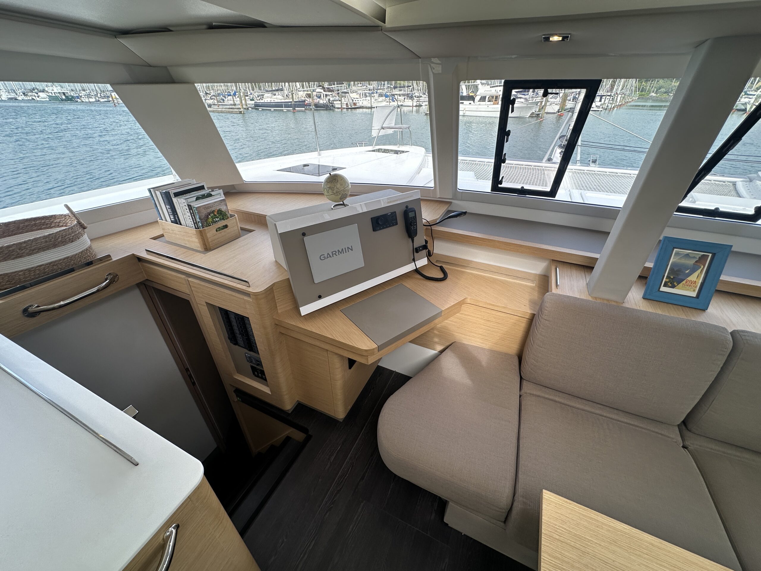 Sailing systems include Nathan’s personal rigging refinements, a quality sail wardrobe, and a well-designed sport helm. The enclosed helm offers safety, visibility and connectivity with the cockpit and saloon.