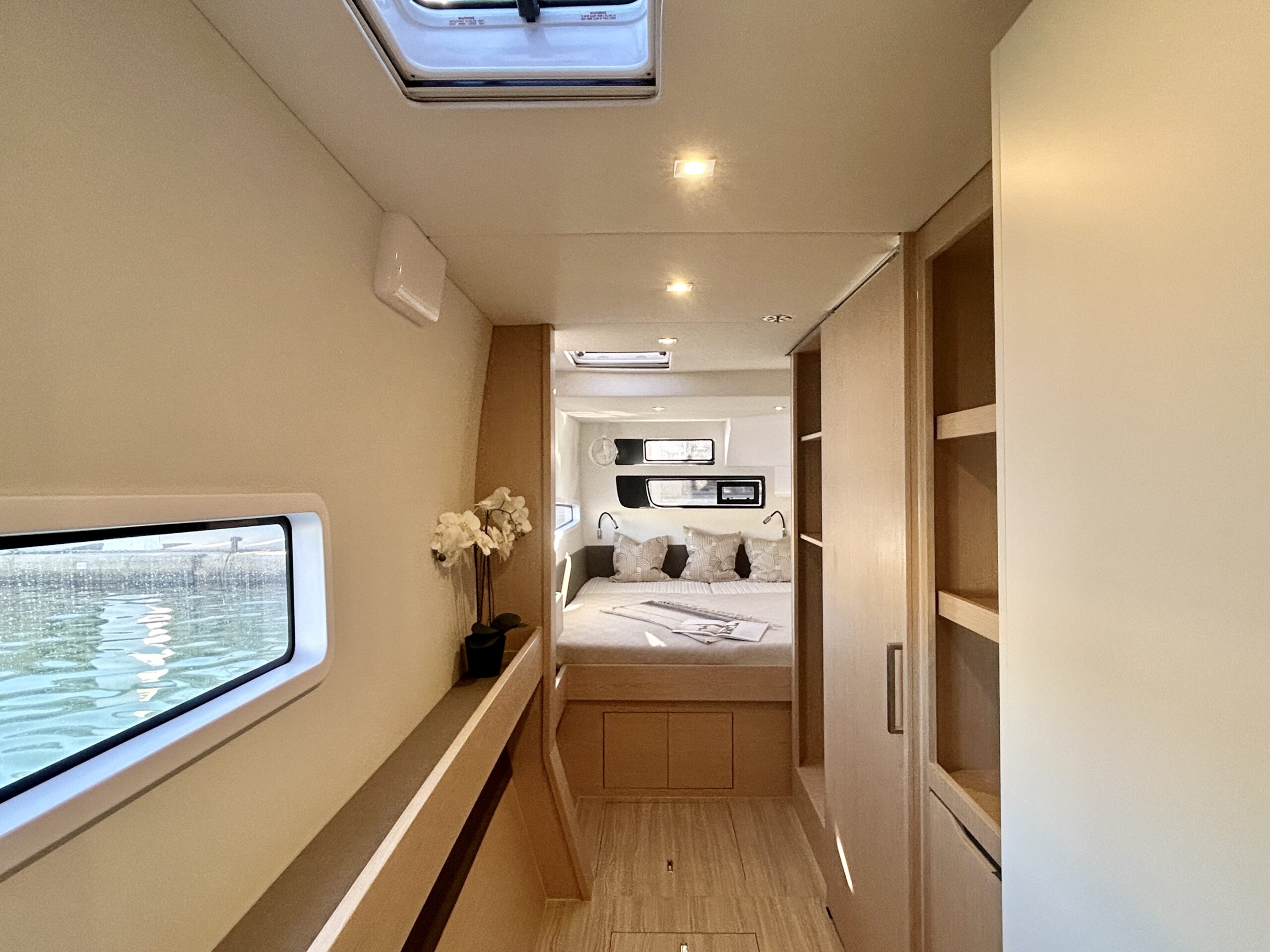 Offered in the highly sought-after full owner’s or Maestro version, the layout maximises space, light and privacy, making her an excellent choice for a couple or a small family. The interior and deck spaces are equally well suited to long-range cruising and relaxed everyday living.