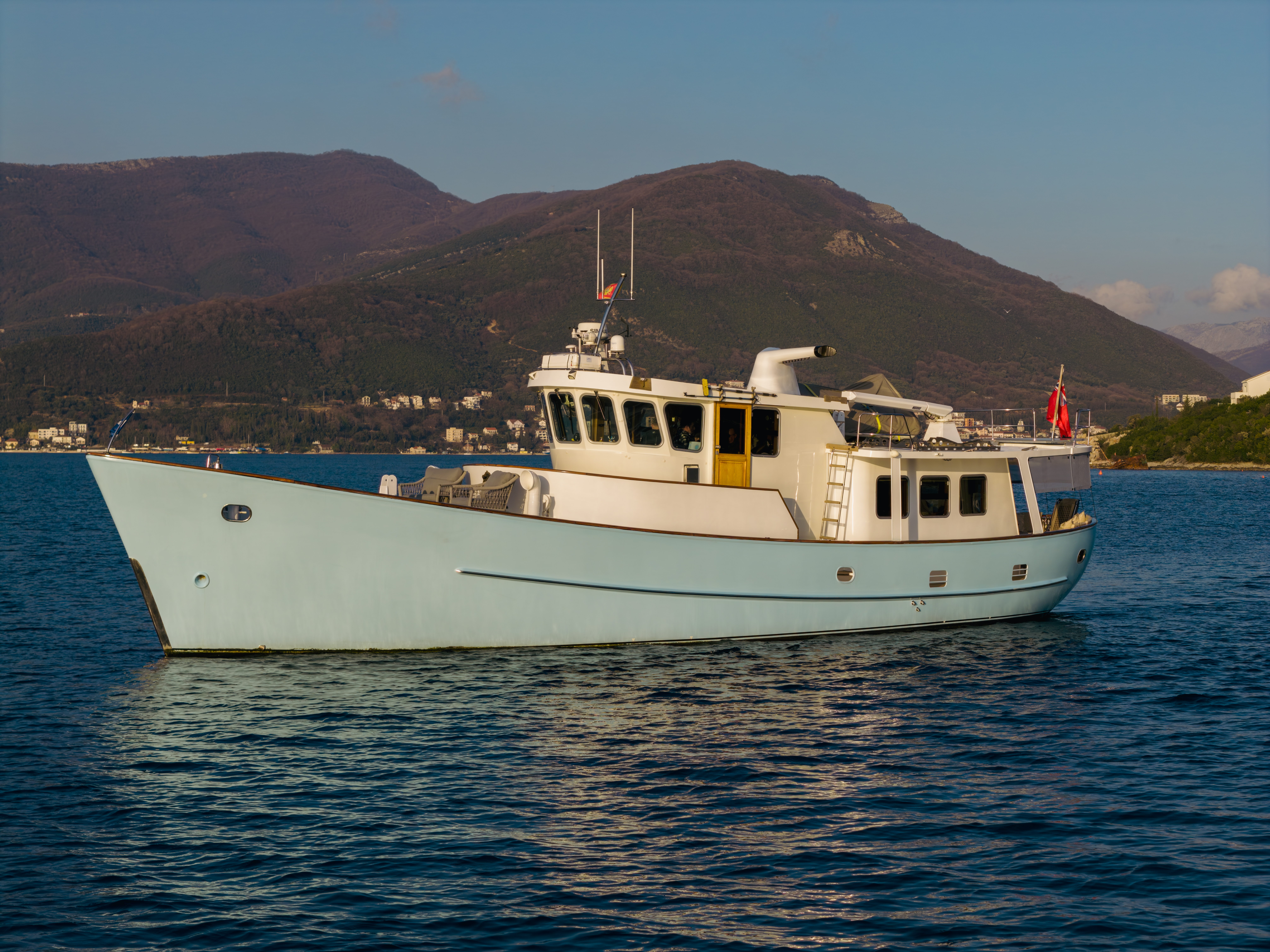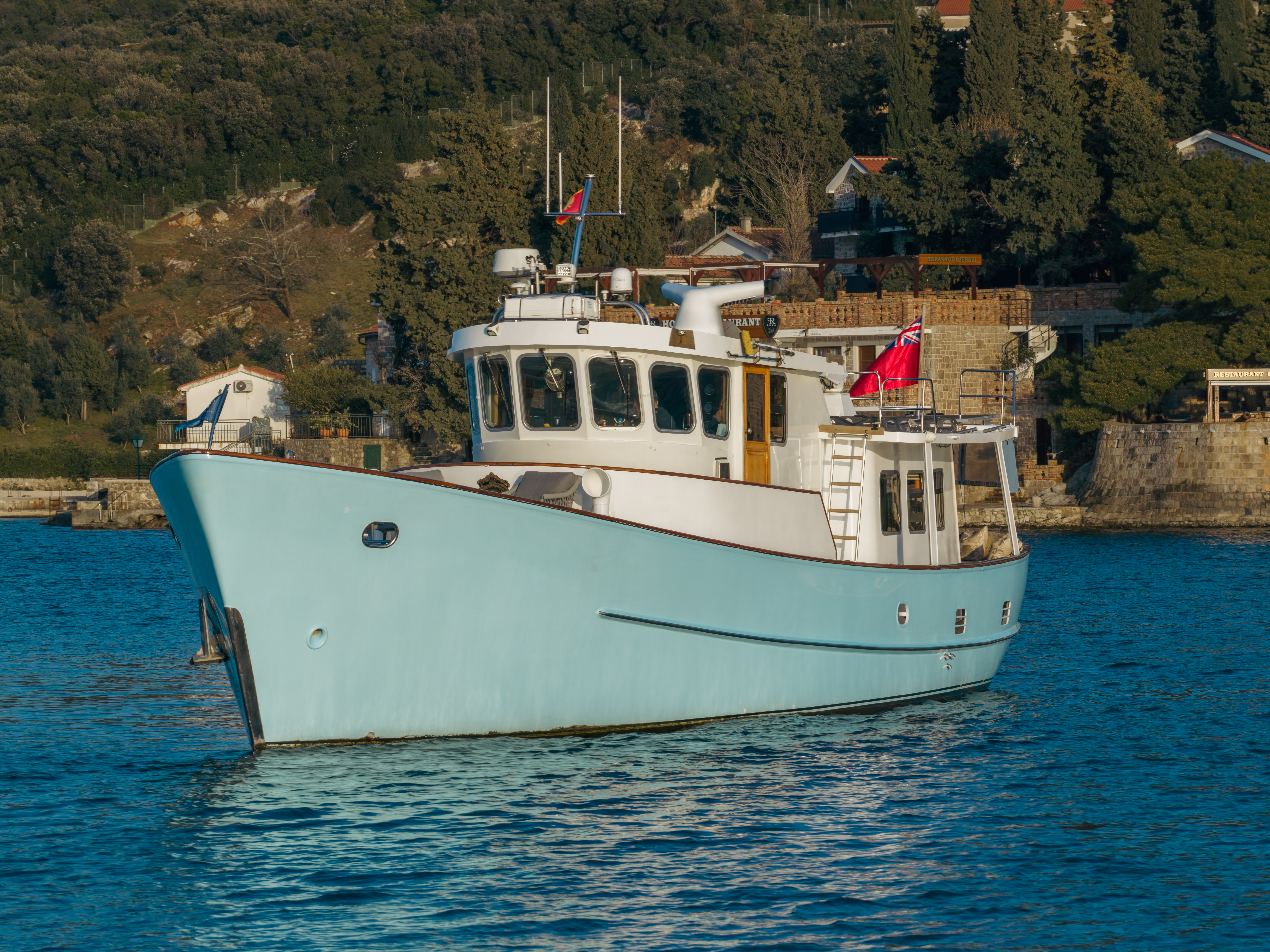 This exceptional 1967 Cammenga 61 North Sea Trawler, Hunter (formerly Sarah Jane II), is now for sale in Montenegro. Designed by the Feadship team of De Vries Lentsch and built at the Cammenga yard in Holland, she combines classic steel construction with modern upgrades for luxury blue water cruising.