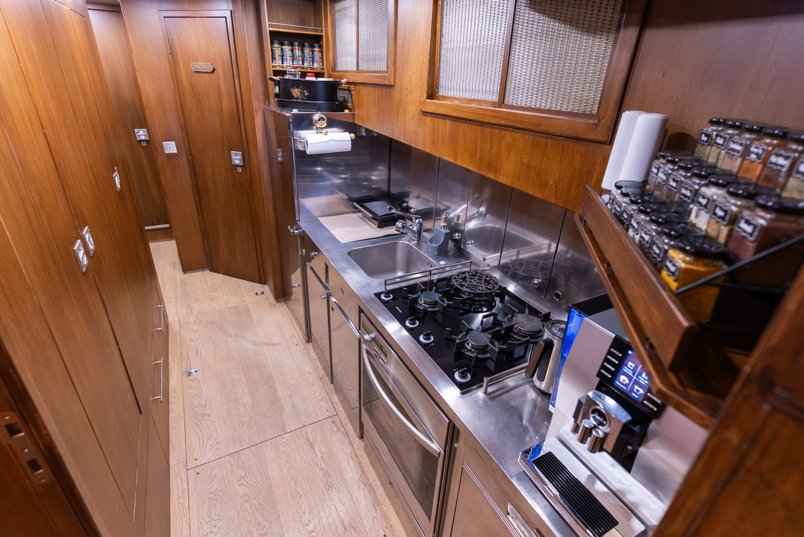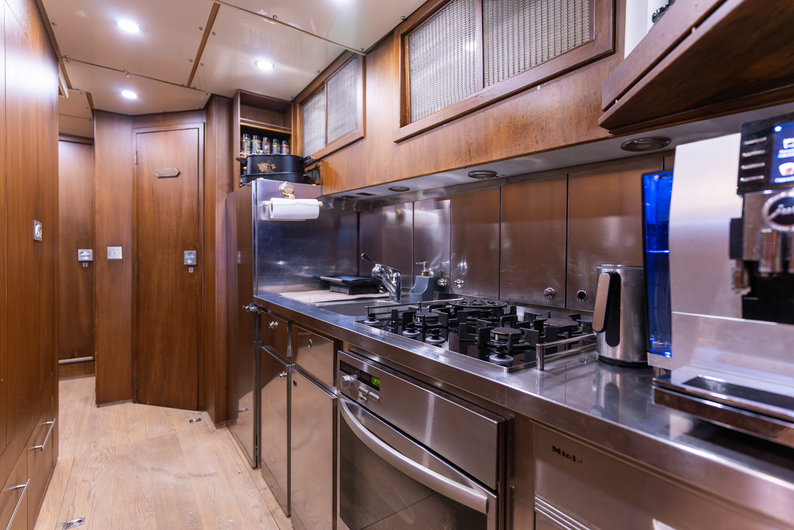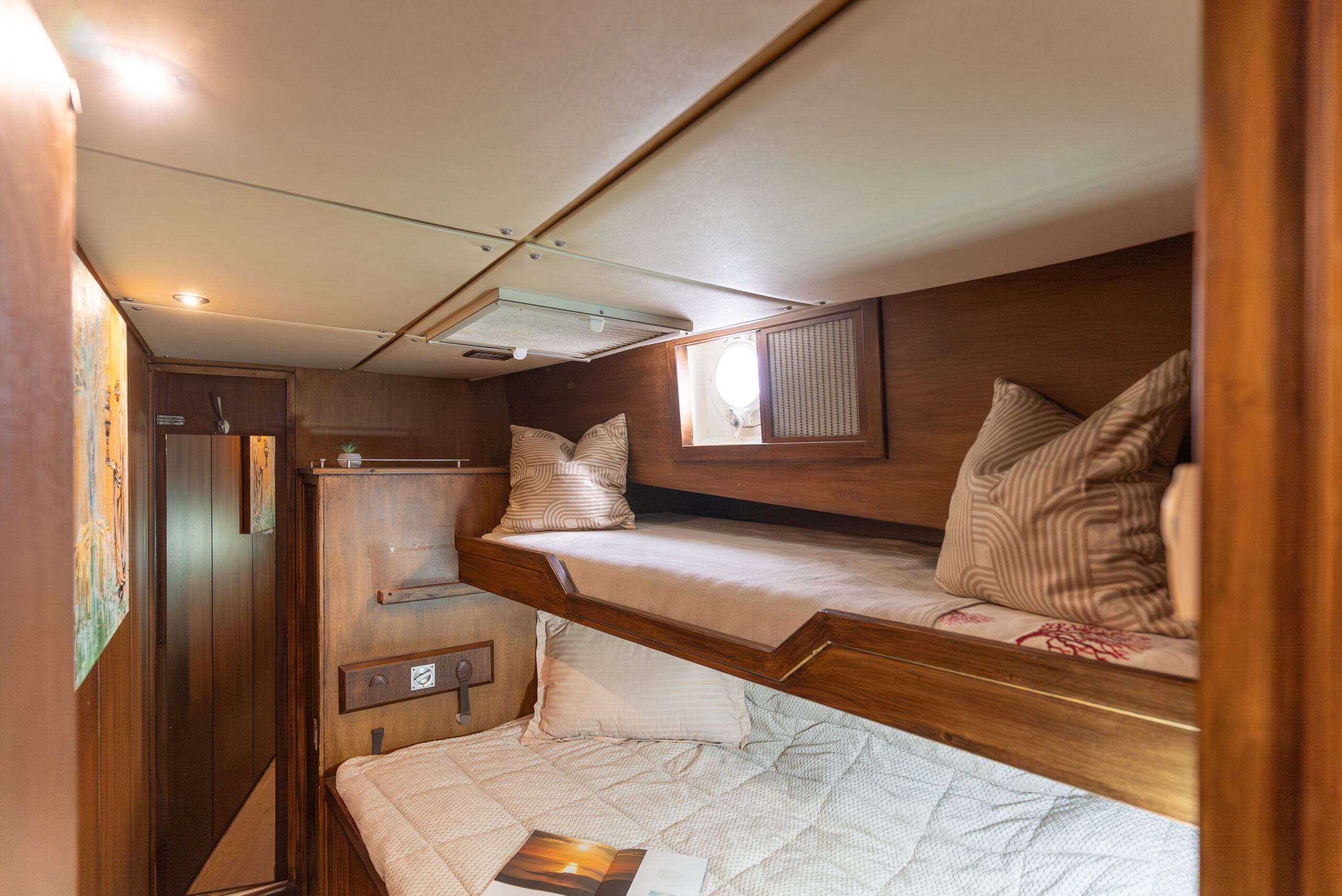 Purchased by her current owner in 2021, Hunter underwent a comprehensive rebuild and refit, including a total hull reinforcement and modernisation, completed between 2021 and 2023. She now presents a striking Baby Blue hull and is fully equipped for long-range cruising in comfort and style.