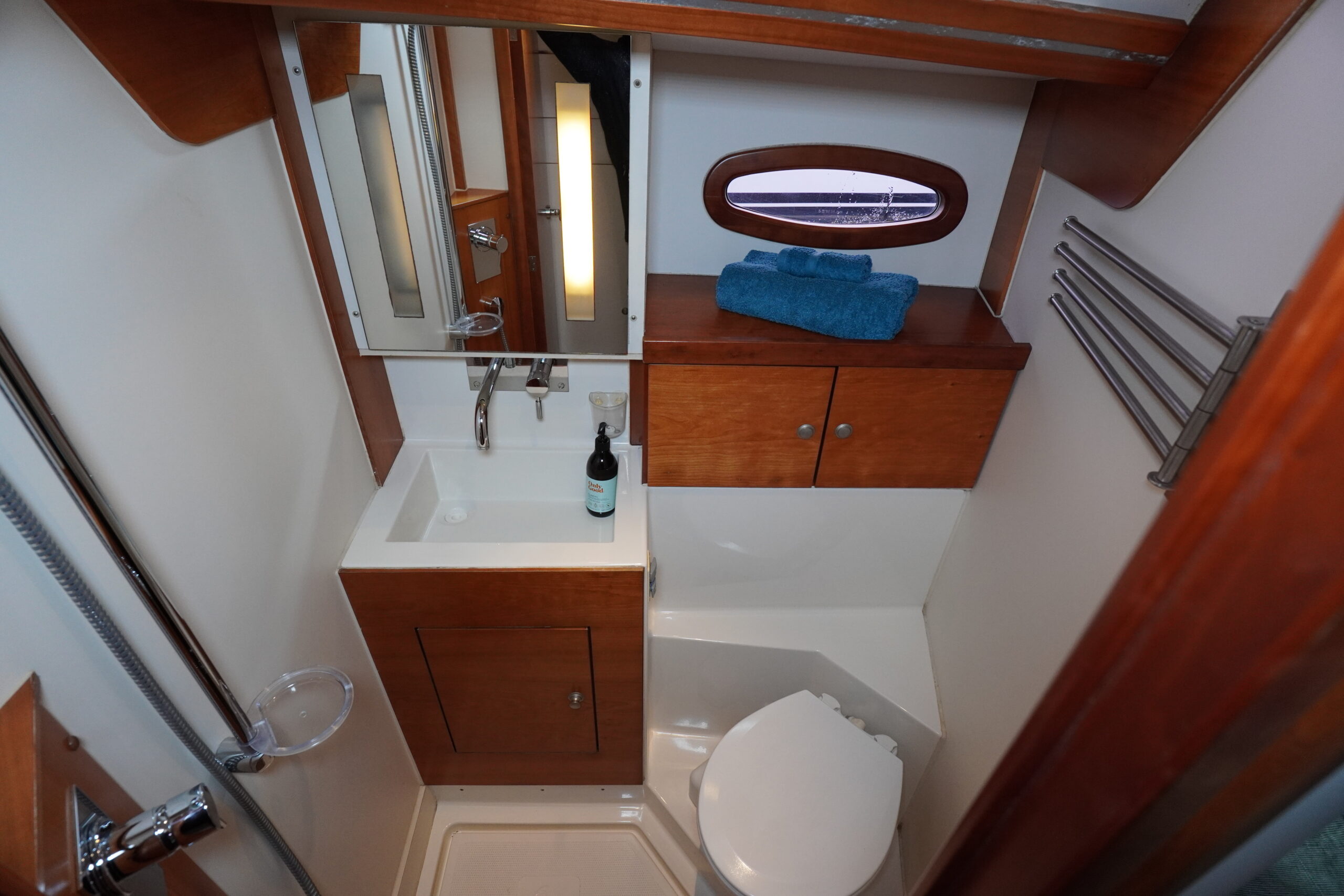 Recent servicing includes mast and rudder bearing service, hydraulic backstay tune, new anchor winch with 100 metres of stainless chain, and a full Northern Lights 6.5 kVA generator service in November 2024.