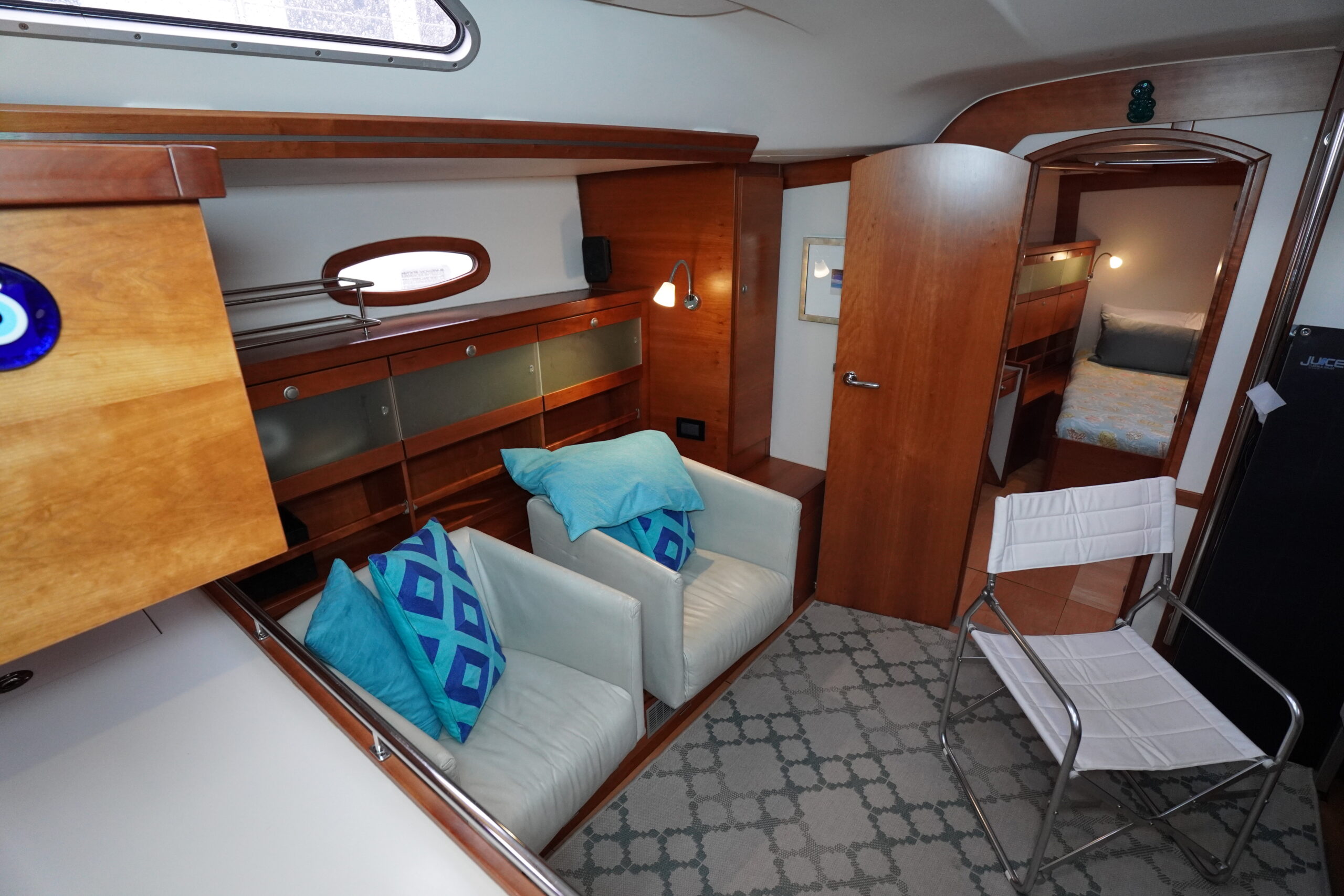 All water and diesel tanks were replaced, along with fresh plumbing, new hot water boiler and updated electrical infrastructure. Navigation and safety are state-of-the-art, with Simrad electronics, radar and a CJD watermaker producing 260 litres per hour. Both water and black water tanks are new, with upgraded fresh water heads and all seacocks replaced.