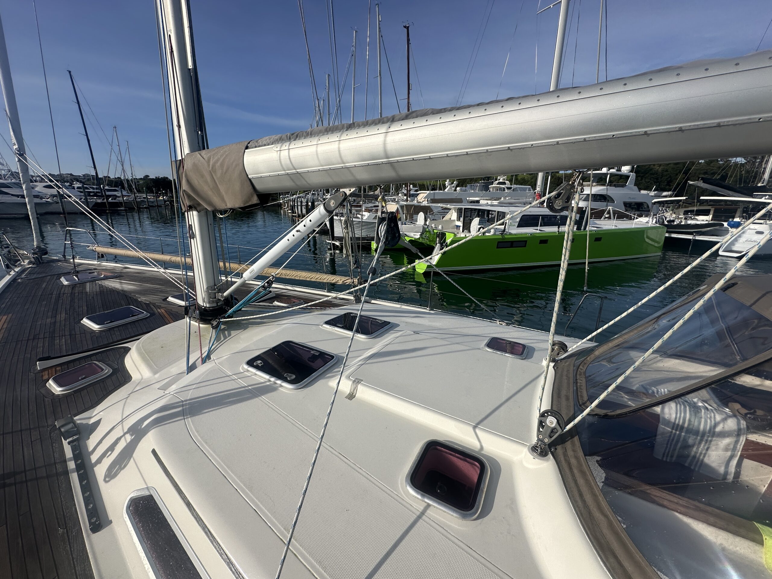 The rig and sail wardrobe are in excellent condition. Savarna features a Leisurefurl boom, Doyle self-tacking and overlapping headsails, a maintained mainsail and two gennakers with socks, allowing for versatile sailing in a range of conditions.