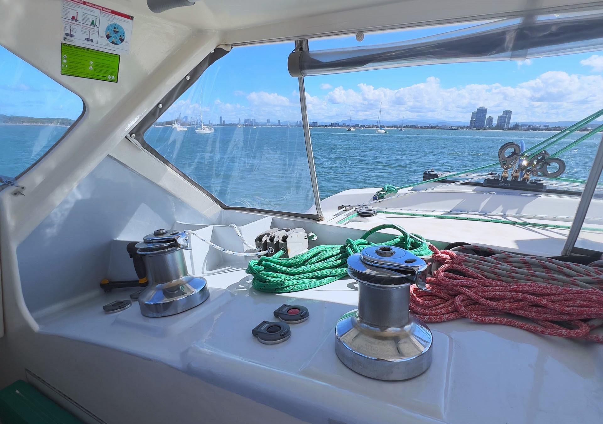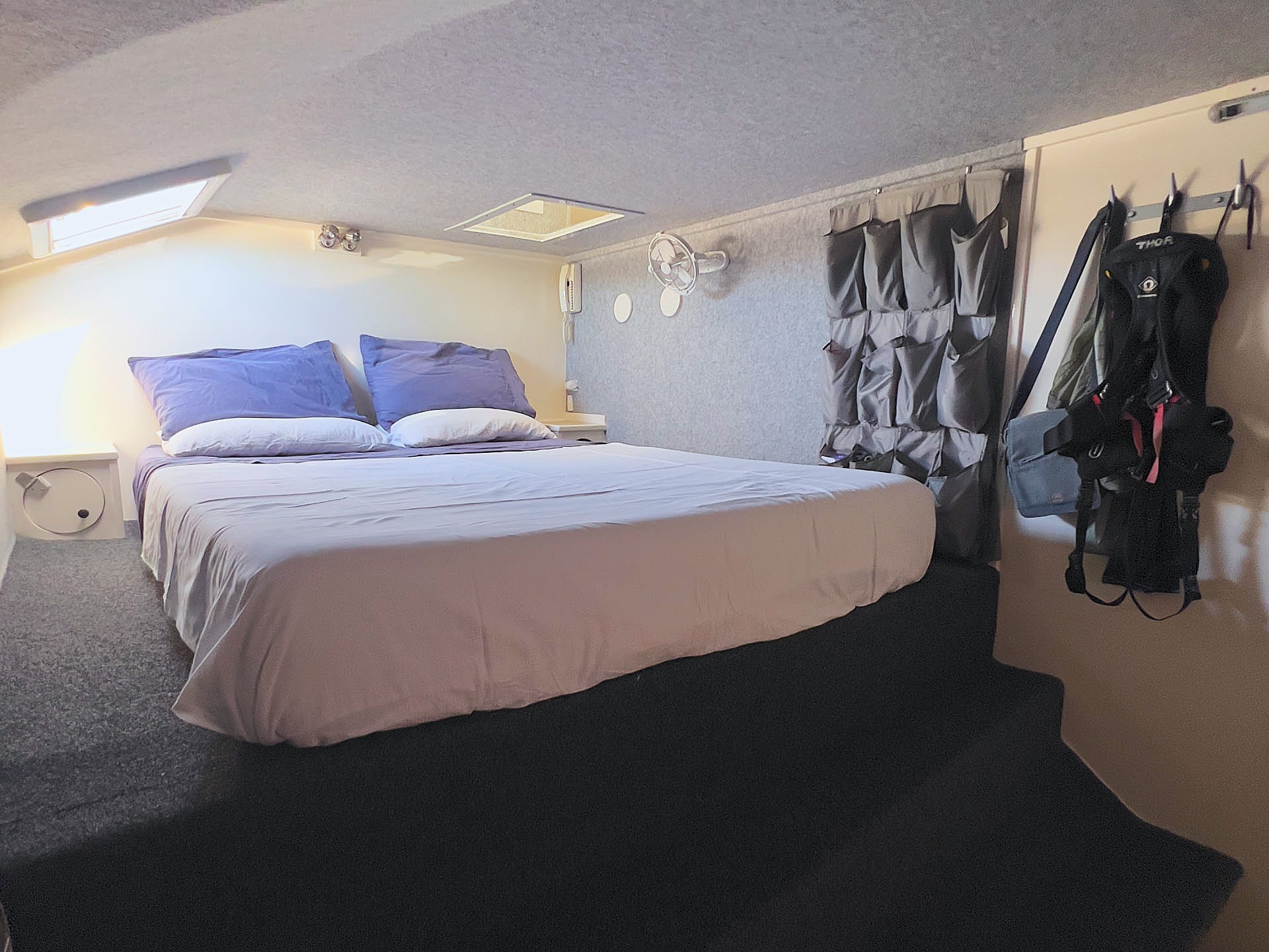 Designed as a hybrid between high-performance sailing and practical cruising comfort, the Wilderness 1620 is known for its ability to cover serious distances with ease. THOR has demonstrated impressive sailing capability, comfortably sustaining speeds above 18 knots under favourable conditions. When the wind eases, her twin 75HP Yanmar engines provide efficient propulsion, capable of cruising on a single engine at approximately 7–9 knots while consuming around 3 litres per hour at 2400 RPM. With approximately 1,000 litres of fuel capacity across two aluminium tanks, she offers excellent range and flexibility for extended voyaging.