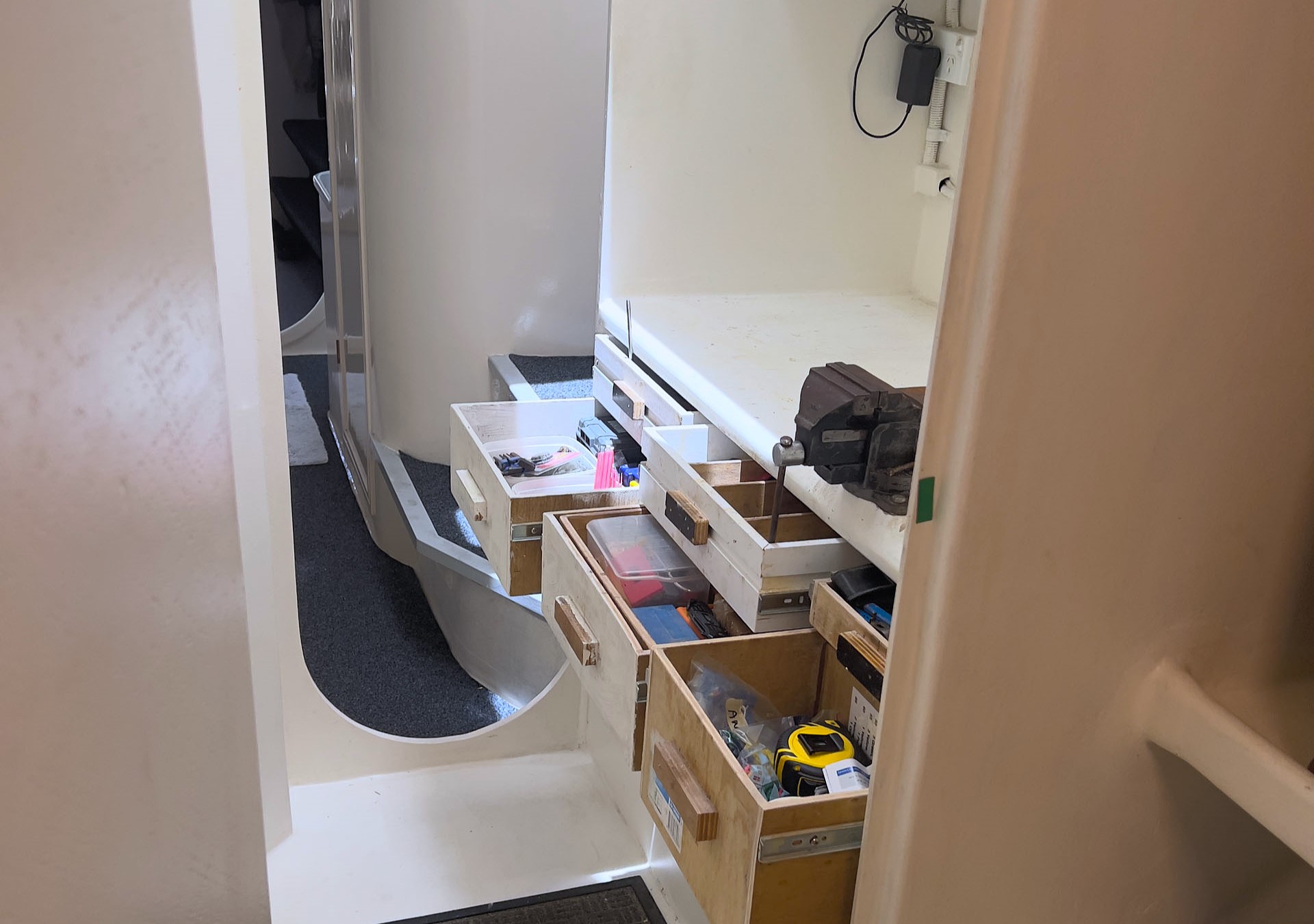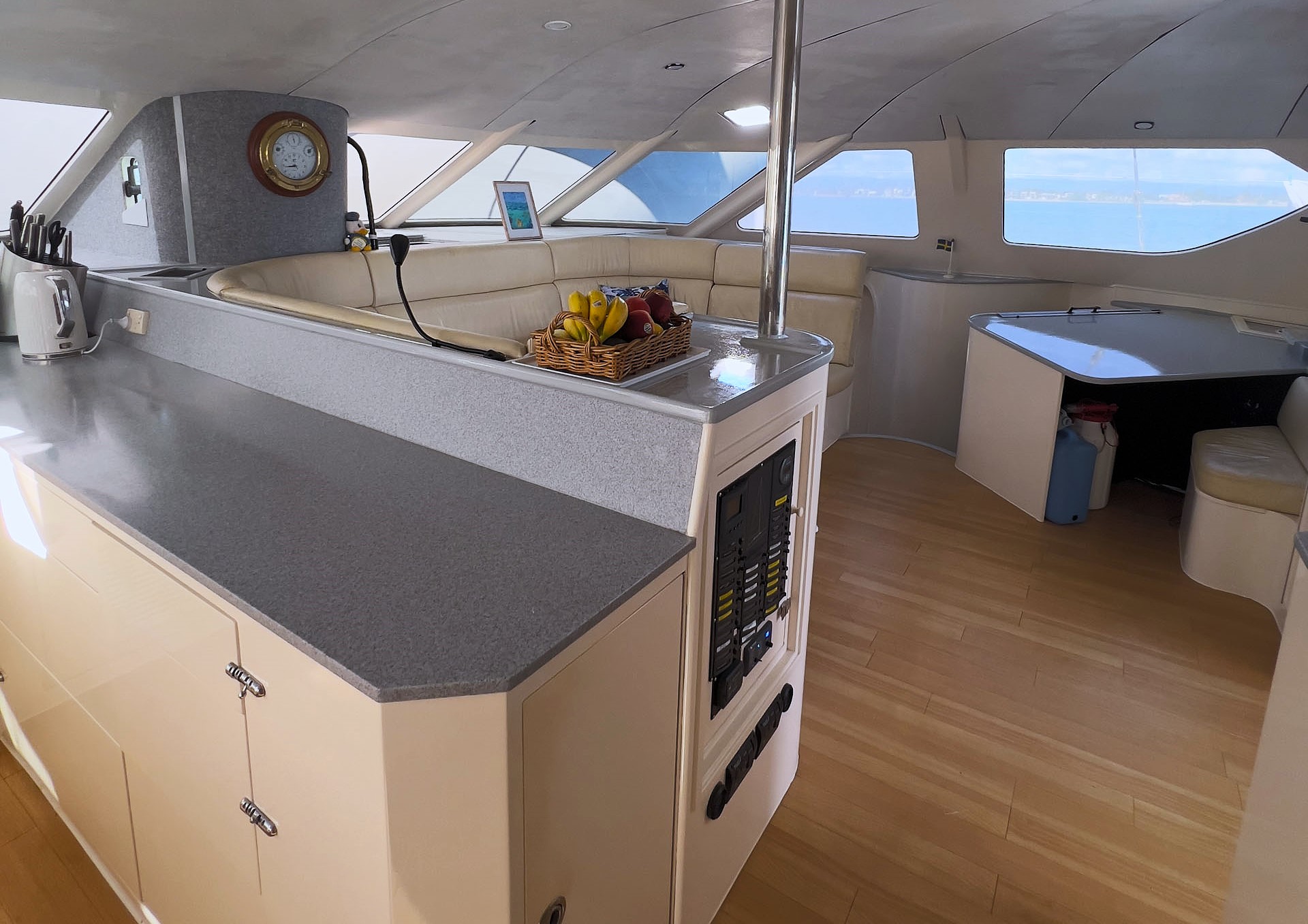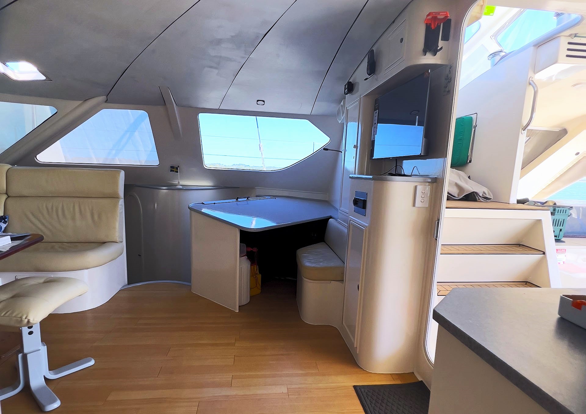 Extensively refurbished during a comprehensive two-year program in 2023/2024 at The Boat Works on the Gold Coast, THOR has been thoughtfully modernised throughout. Virtually every system on board has been reviewed or upgraded, creating a highly integrated and efficient vessel that is both comfortable to live aboard and straightforward to operate. One of the vessel’s three cabins has been cleverly converted into a dedicated workshop and utility space, housing the generator, desalinator, and key service systems, allowing maintenance and operation to be carried out easily without disrupting daily life on board.