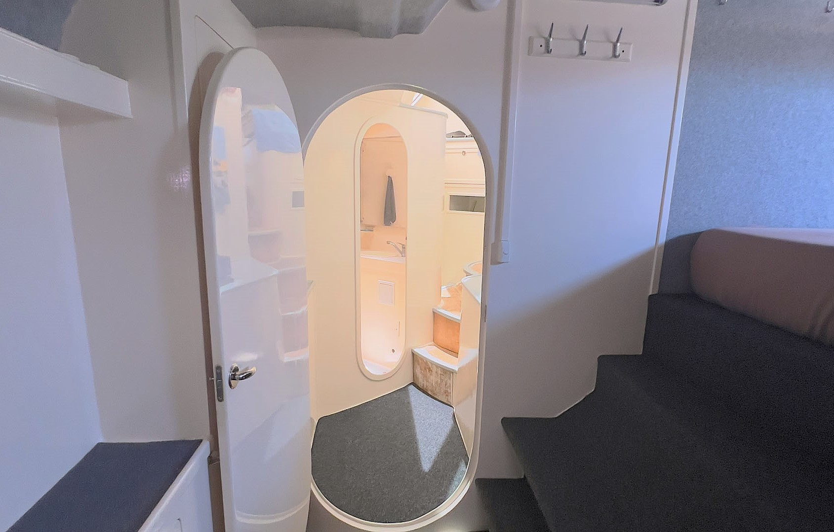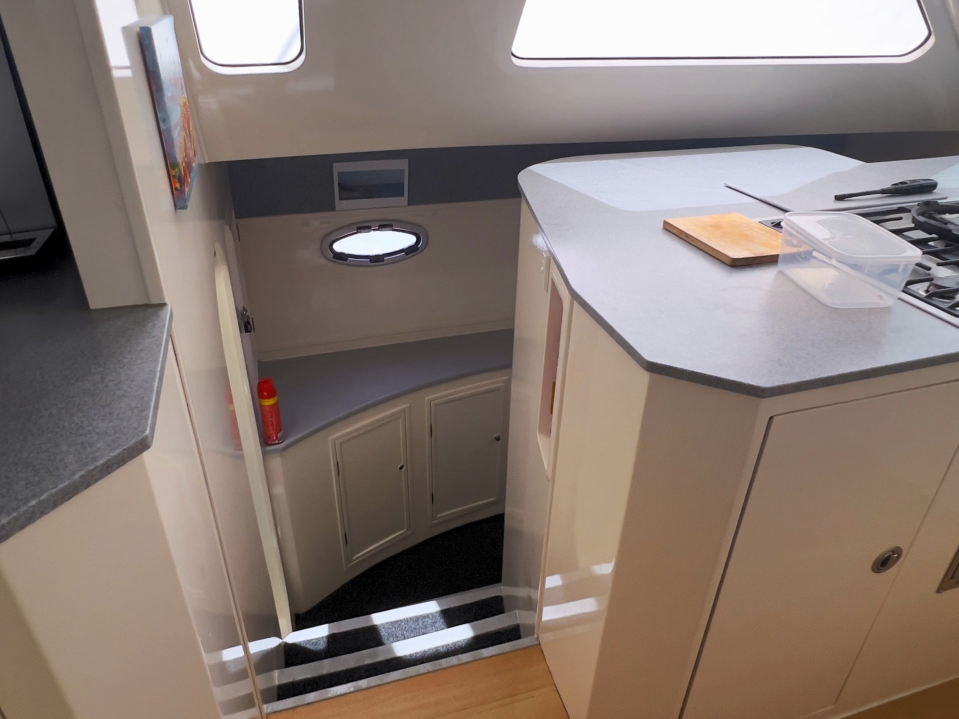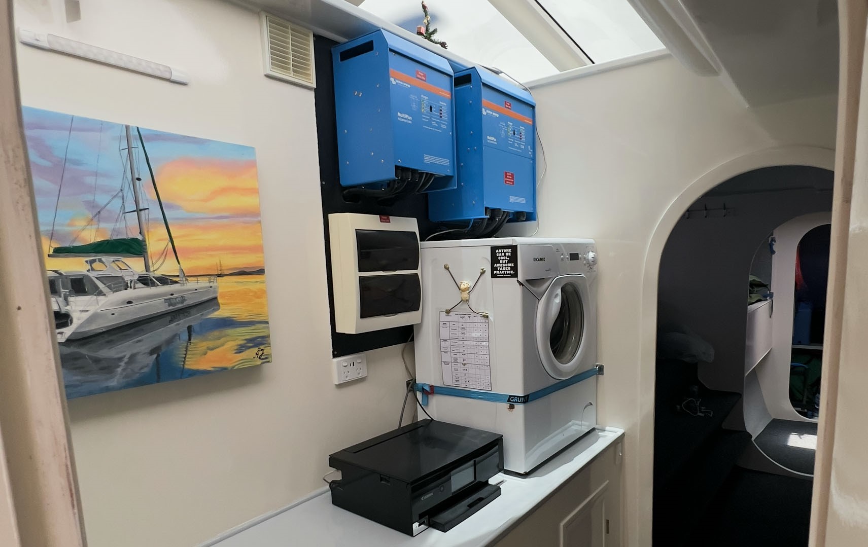 Extensively refurbished during a comprehensive two-year program in 2023/2024 at The Boat Works on the Gold Coast, THOR has been thoughtfully modernised throughout. Virtually every system on board has been reviewed or upgraded, creating a highly integrated and efficient vessel that is both comfortable to live aboard and straightforward to operate. One of the vessel’s three cabins has been cleverly converted into a dedicated workshop and utility space, housing the generator, desalinator, and key service systems, allowing maintenance and operation to be carried out easily without disrupting daily life on board.