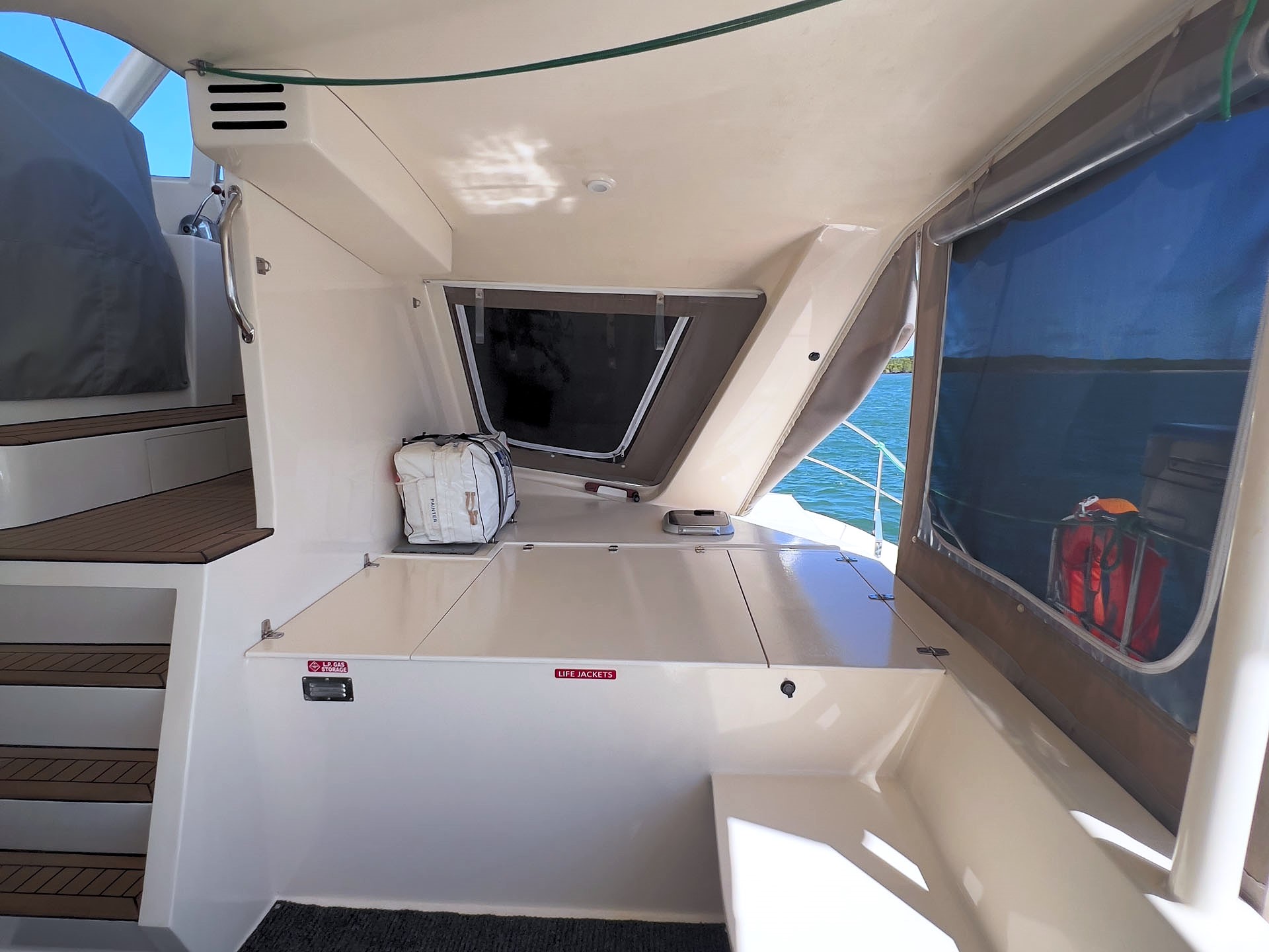 A defining feature of THOR is the fully enclosed raised helm, offering excellent protection from the elements while delivering outstanding 360-degree visibility. This practical design allows passage-making and docking to be conducted from a comfortable, sheltered position, making extended cruising more enjoyable in all conditions.