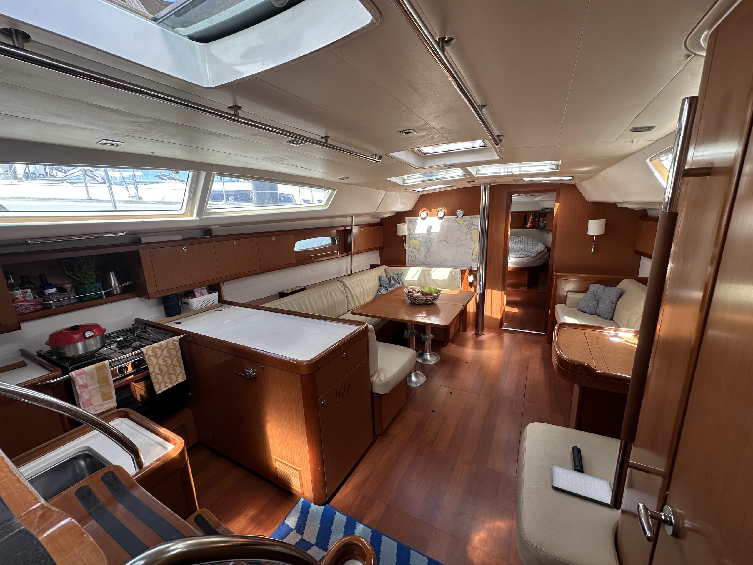Leia is a clean, tidy and exceptionally well-maintained example of this popular and proven cruising model, presented in the highly sought-after three-cabin owner’s layout.