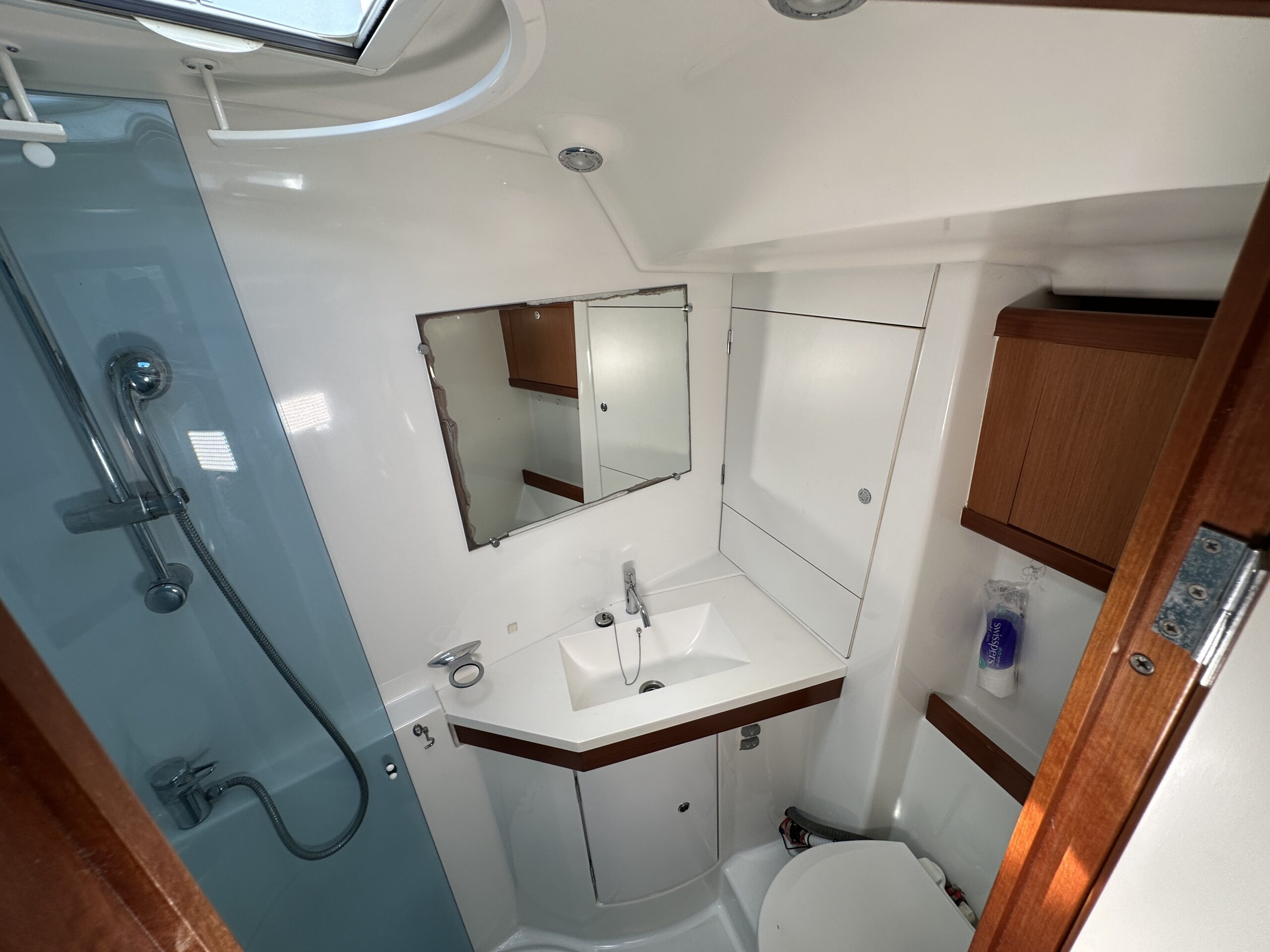 Her electronics package is comprehensive and recently upgraded, centred around a modern Raymarine navigation suite, supported by Starlink Mini, PredictWind integration, Iridium and an Orca 2 navigation system — providing excellent onboard redundancy for extended cruising.