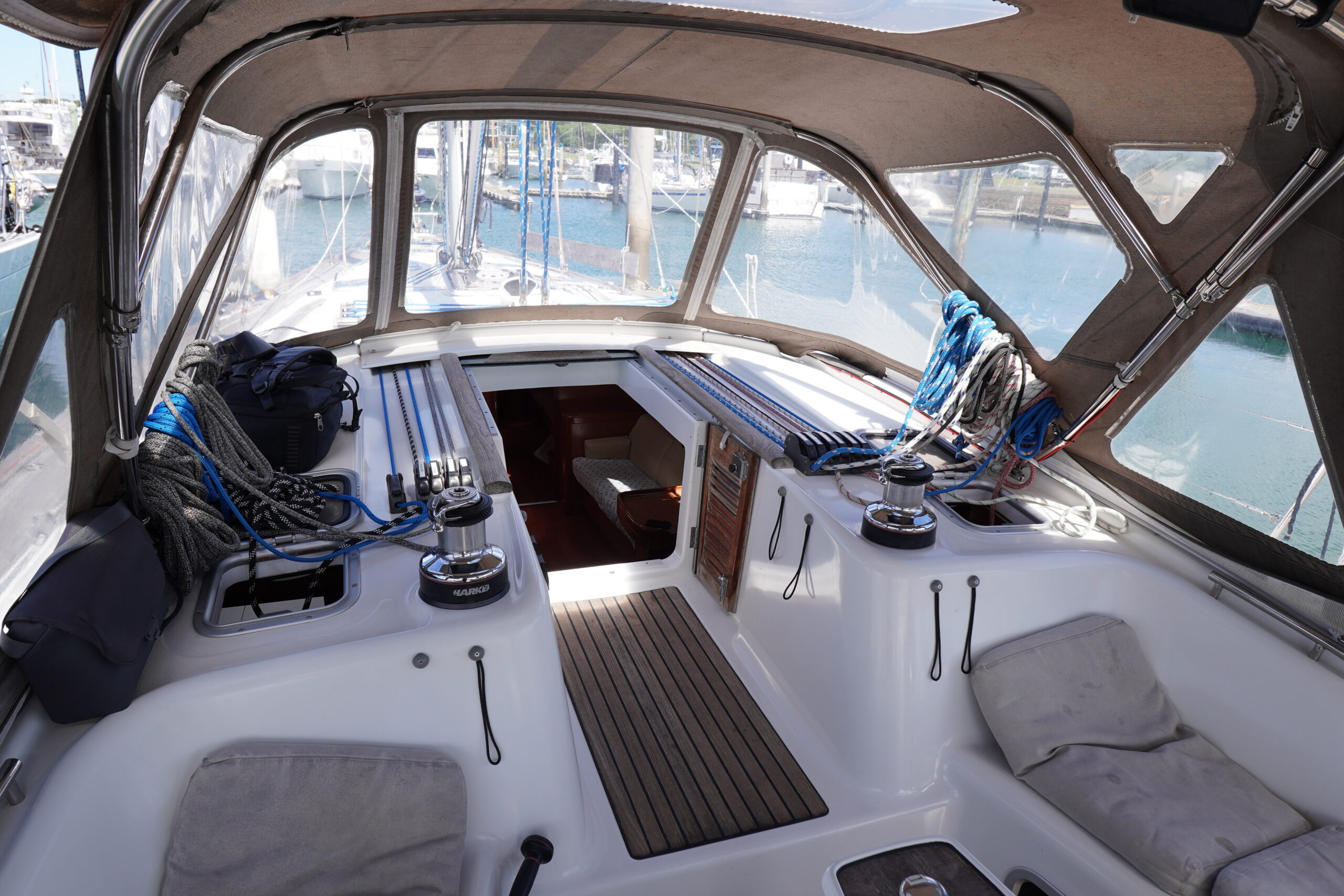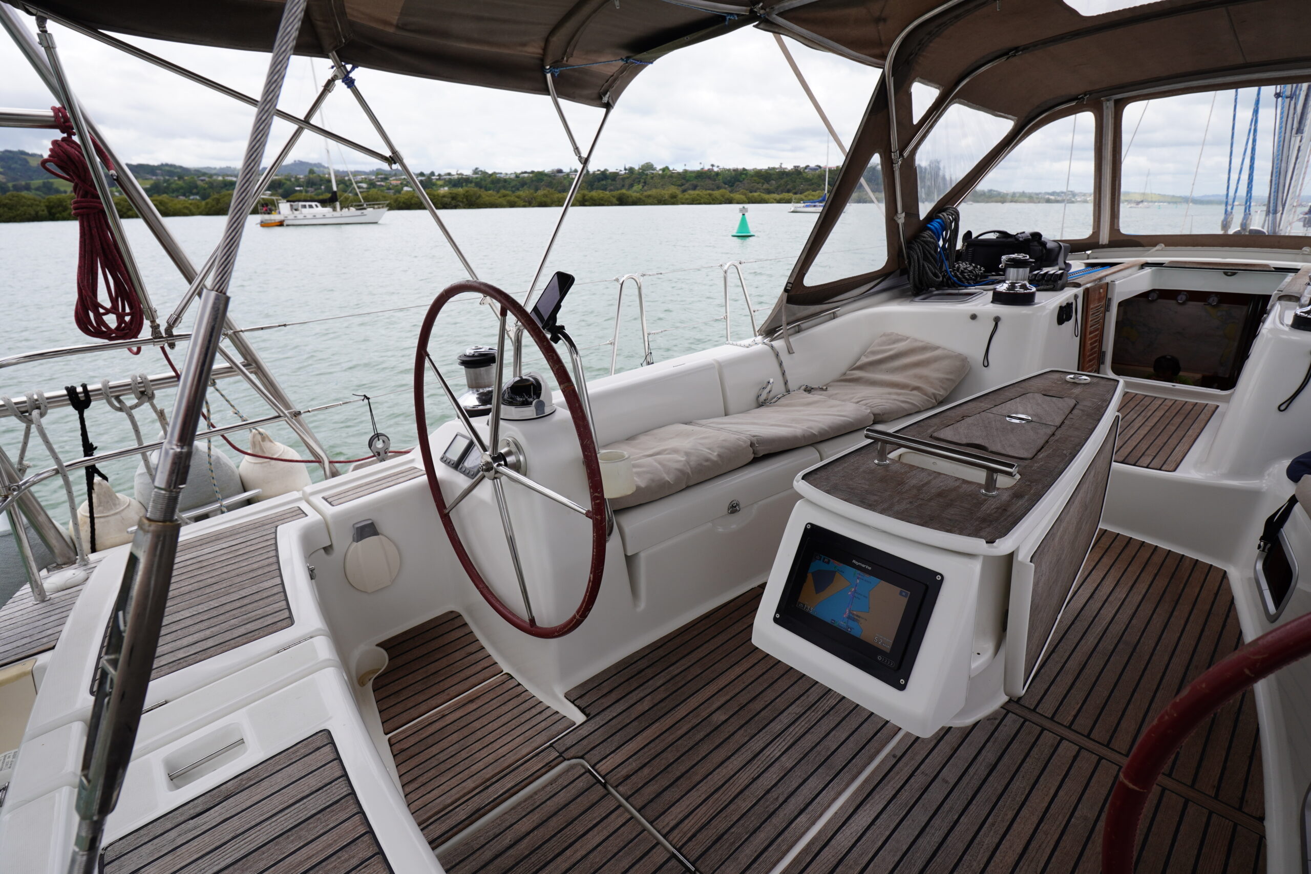 Well-equipped and ocean-capable, she arrived in New Zealand last season and is ideally set up for comfortable coastal cruising or extended offshore passage making. Her cockpit features quality enclosures, creating a sheltered and highly usable outdoor living space in varied conditions. Thoughtfully configured throughout, she balances liveaboard comfort with serious offshore capability.
