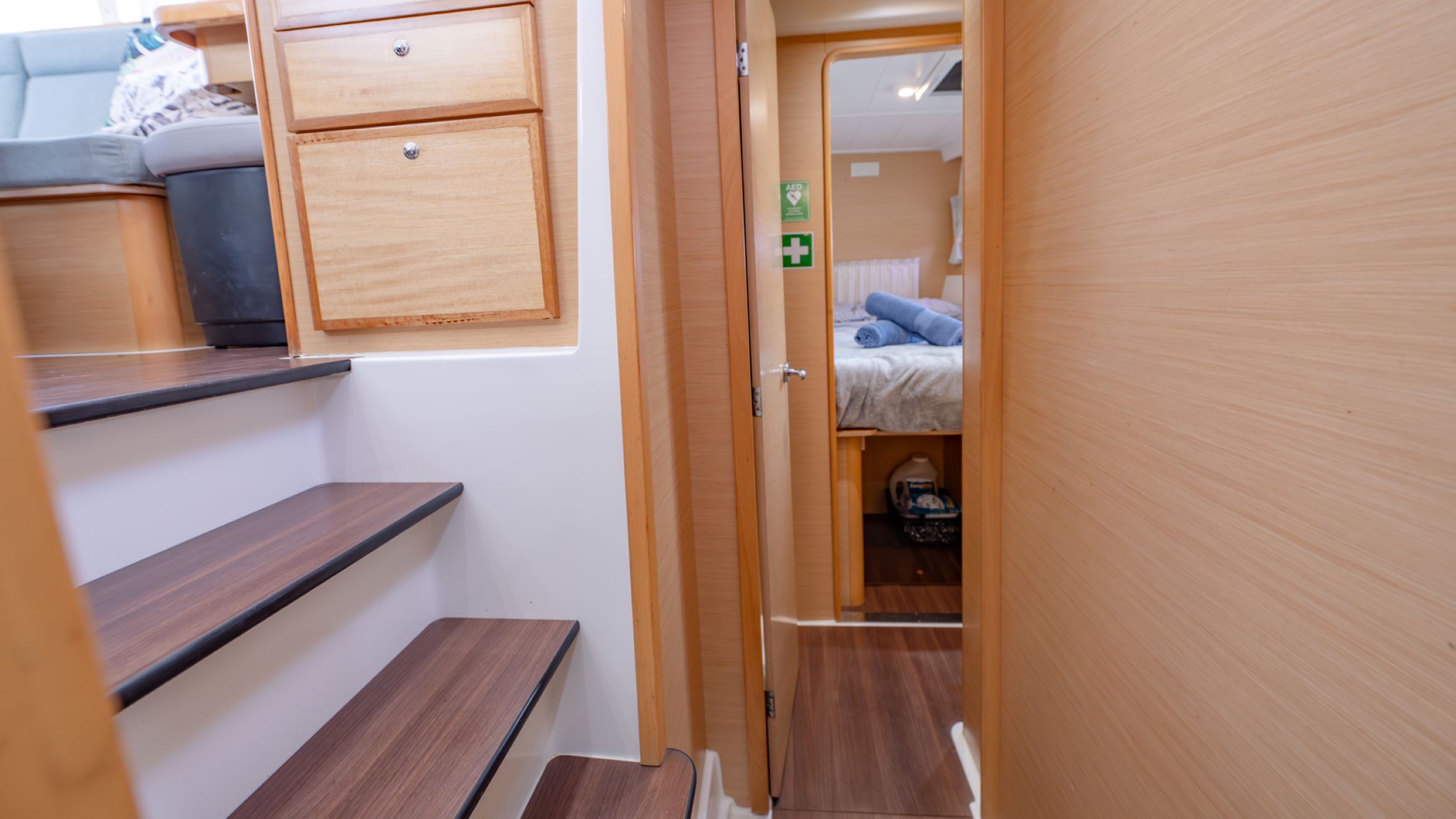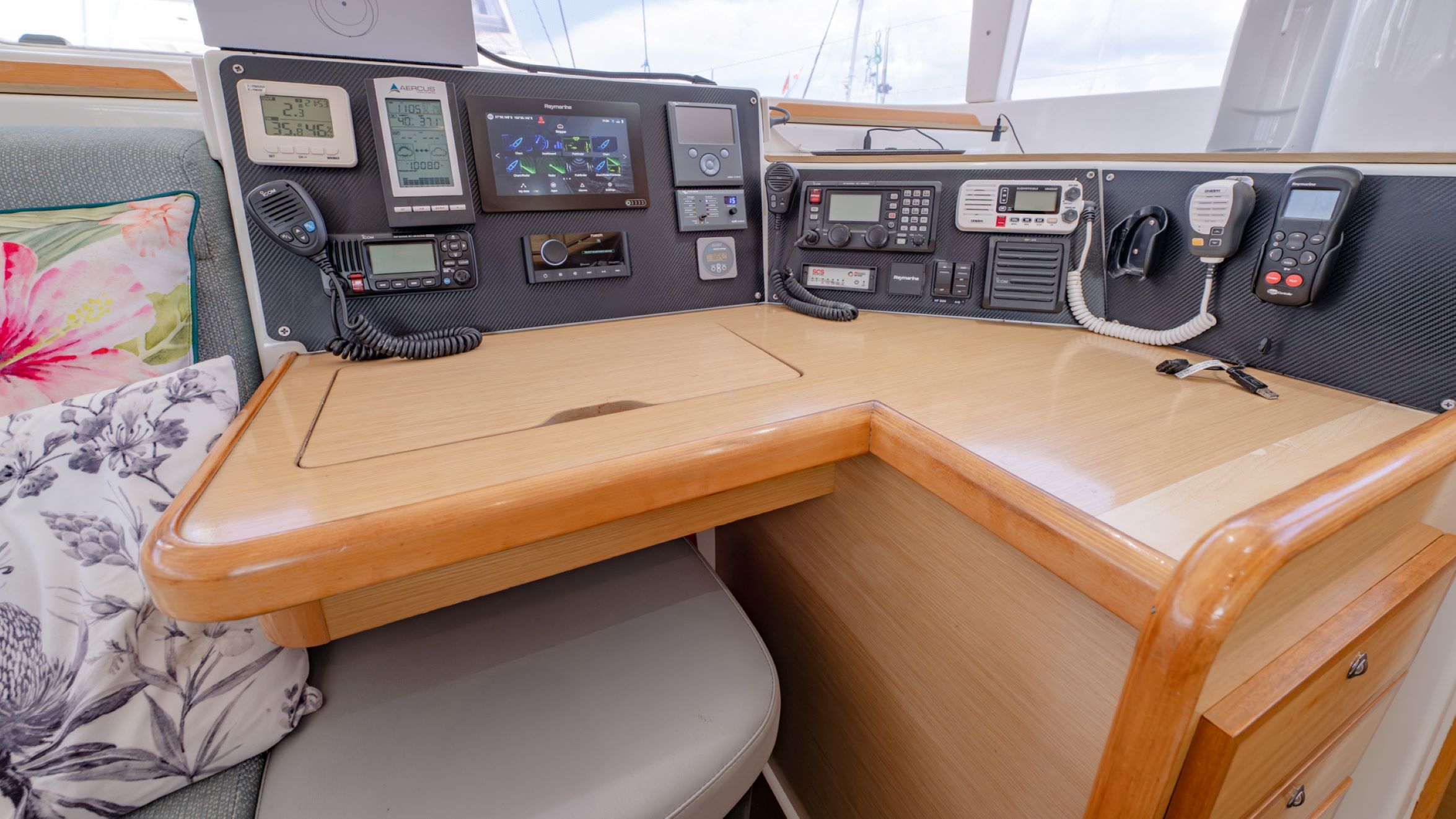 Safety and redundancy have clearly been prioritised. Notable features include a Life Cell for four persons, an Ocean Master life raft, comprehensive safety gear and well-maintained standing rigging replaced in 2018 and inspected in 2023.