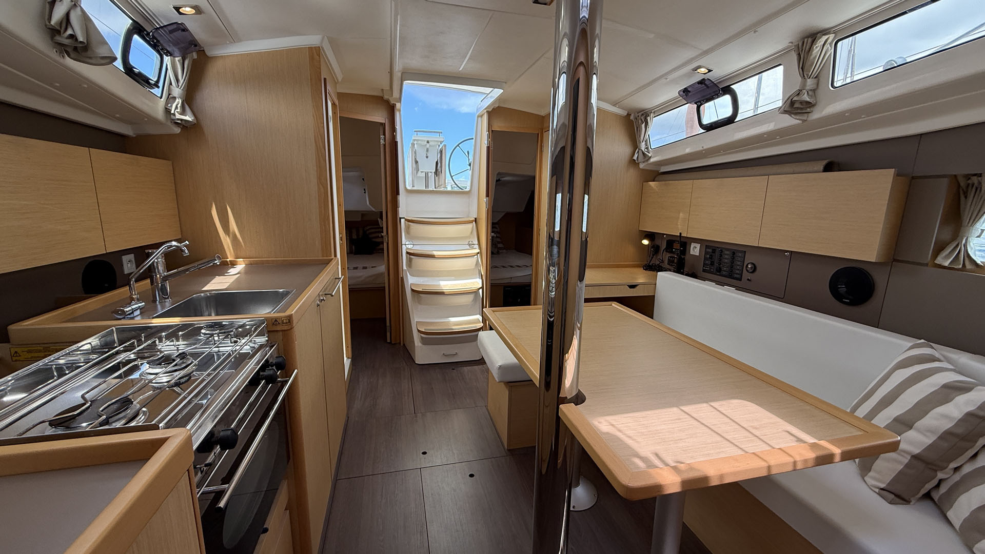 With only 260 engine hours, Miss Lucie sits among the most lightly used Oceanis 38s available today. Her longest passage has been a gentle voyage to Bora Bora, reflecting a life spent in sheltered waters rather than in heavy rotation. For buyers seeking a clean, minimally used yacht, she represents a rare and standout opportunity.