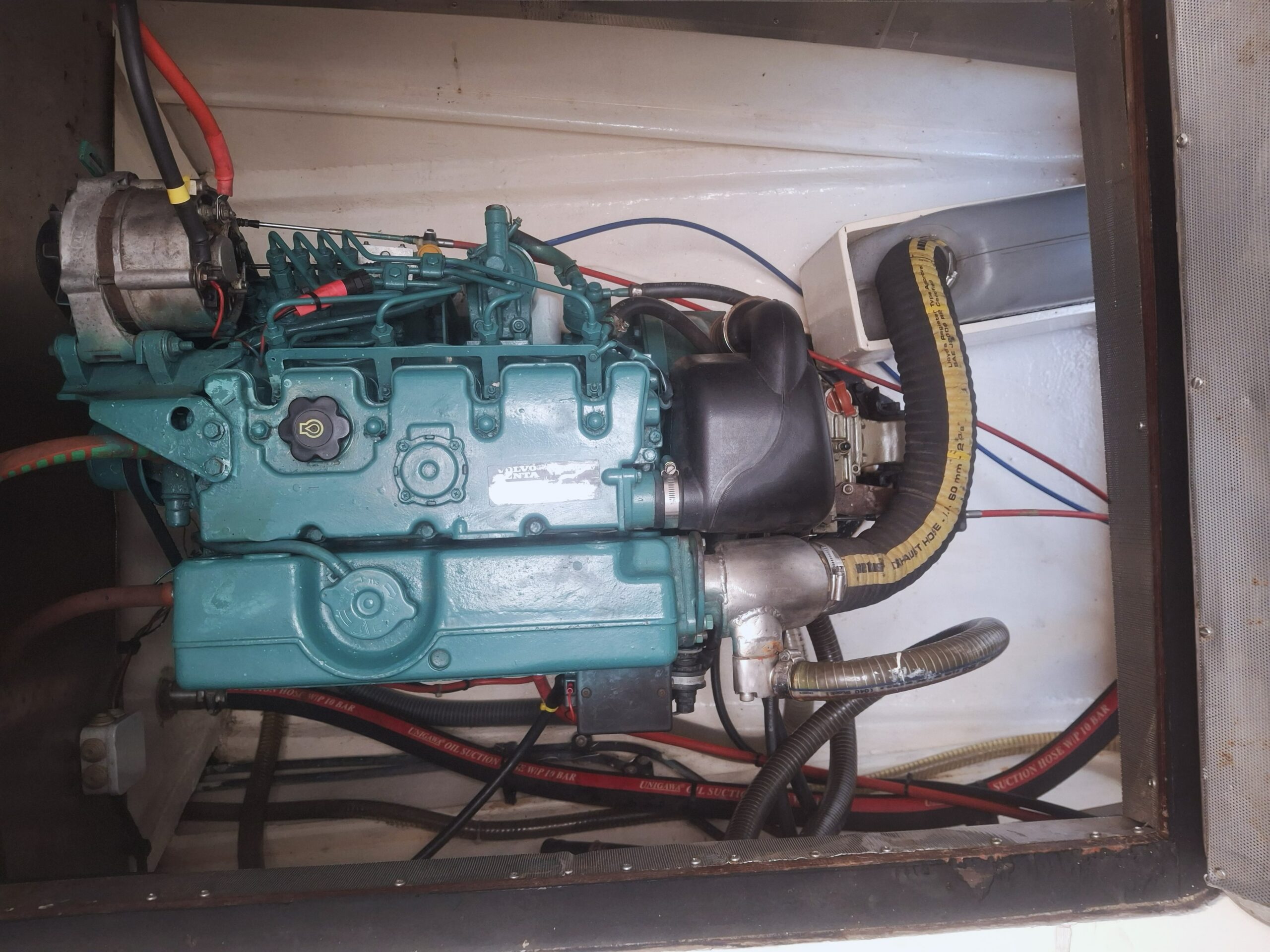 Sailing performance is supported by a Sparcraft aluminium mast, renewed standing rigging, Dyneema running rigging and a versatile sail wardrobe. Twin Volvo D2-55 engines provide reliable power, complemented by excellent electrical autonomy from lithium batteries, solar, smart alternators, inverter, charger and a low-hour Fischer Panda generator.