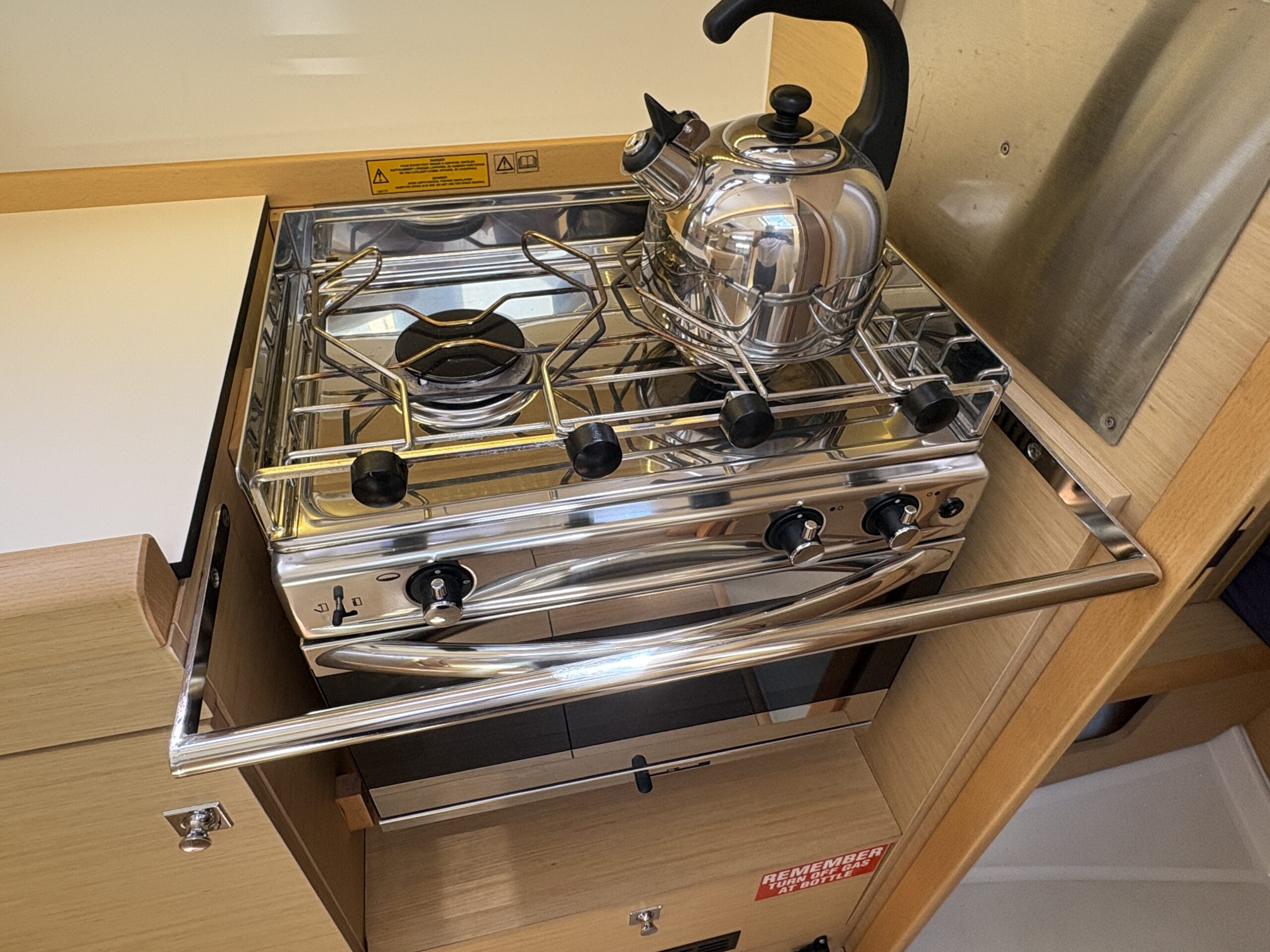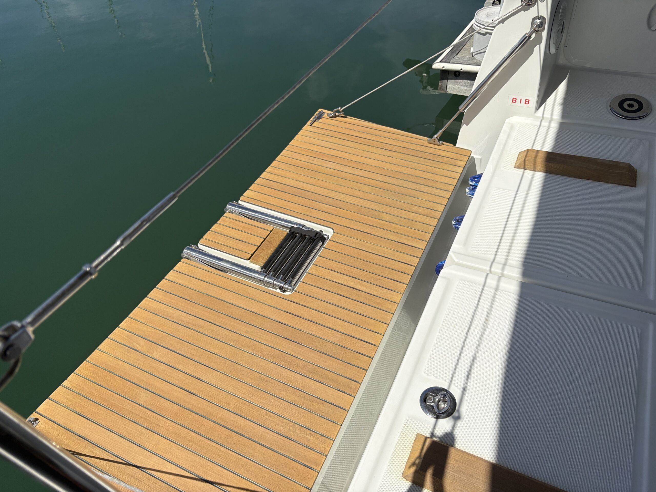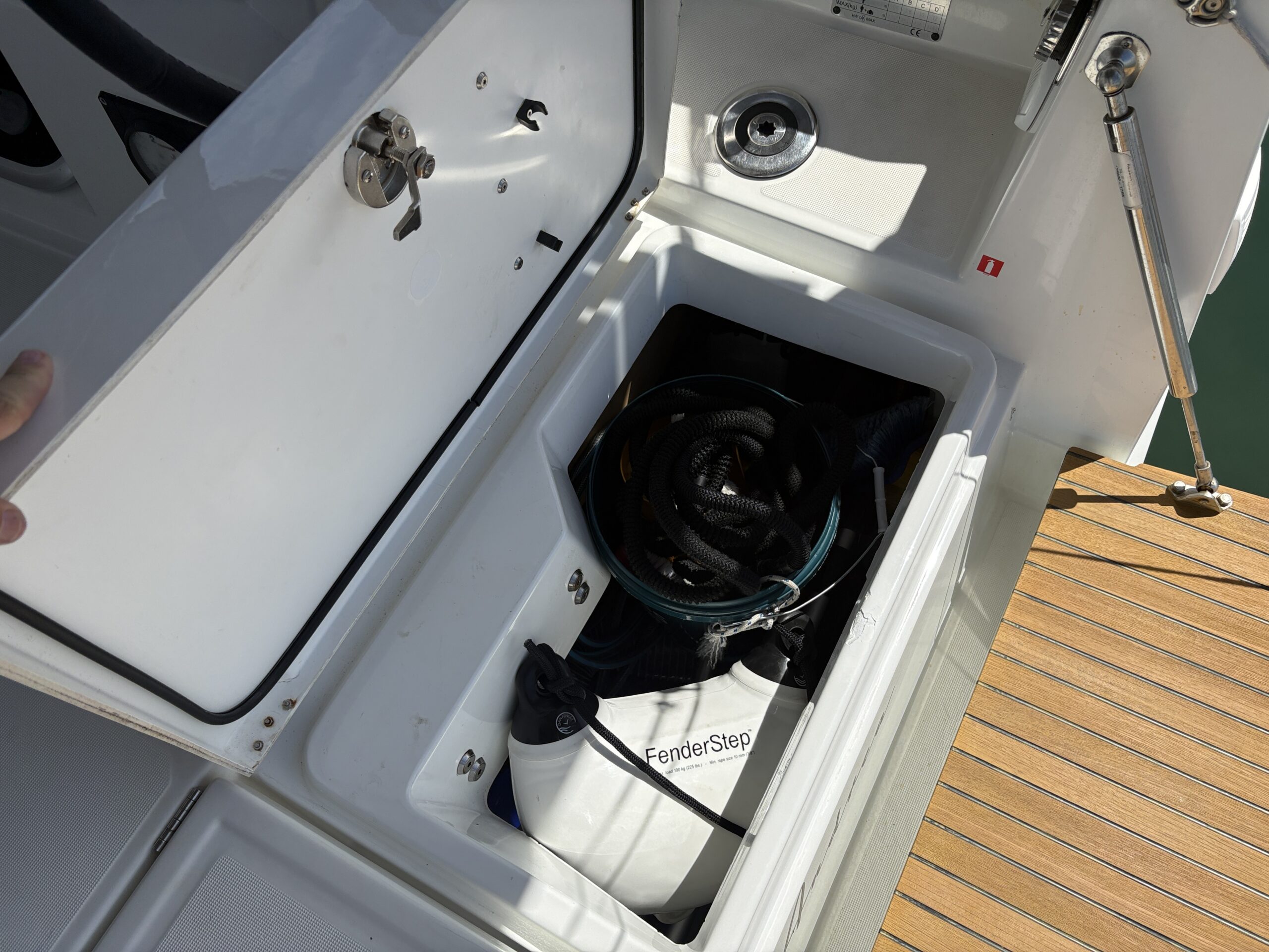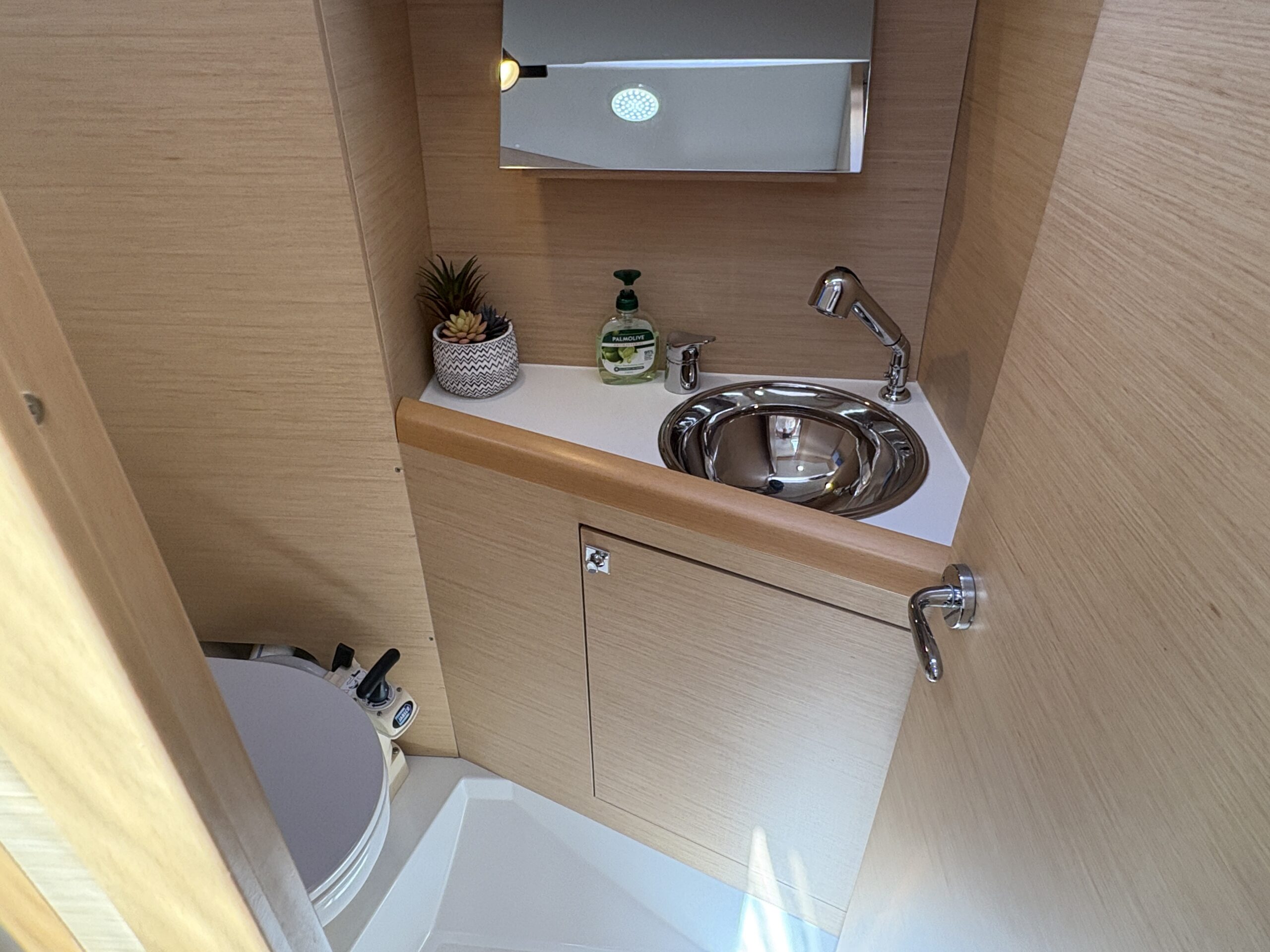 Designed with simplicity and efficiency in mind, Andrea features an in-mast furling mainsail and self-tacking jib, making sail handling straightforward whether sailing solo or with family and friends. A bow thruster provides added confidence when manoeuvring in tight marinas, while the Raymarine electronics package delivers reliable navigation and clear information at the helm.