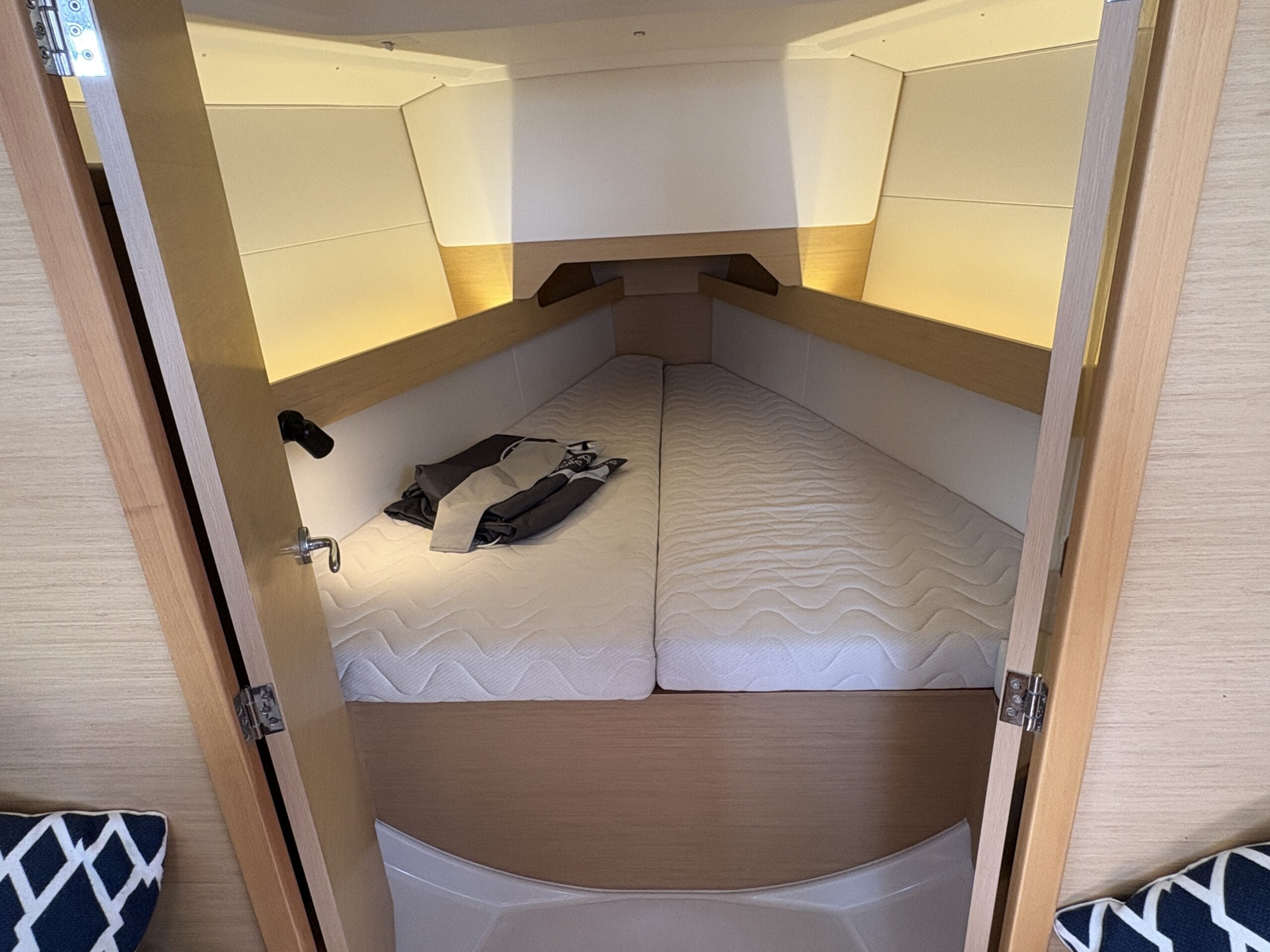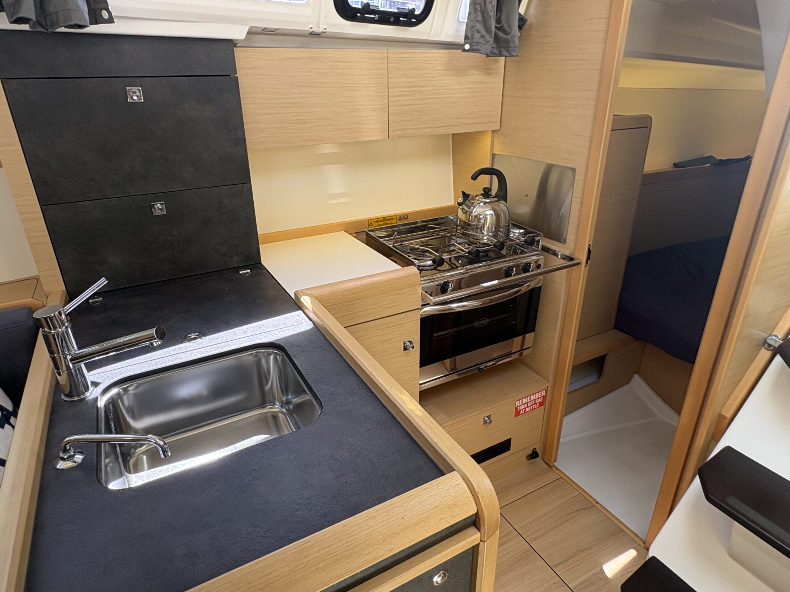 Below deck, the three cabin layout offers comfortable accommodation for cruising, complemented by Jeanneau’s signature light-filled saloon and quality fit-out throughout. Practical storage, good headroom and excellent ventilation enhance liveability onboard. On deck, the cockpit is well arranged for relaxed sailing and entertaining, while a 400W solar system supports extended time at anchor and improved independence away from marinas.