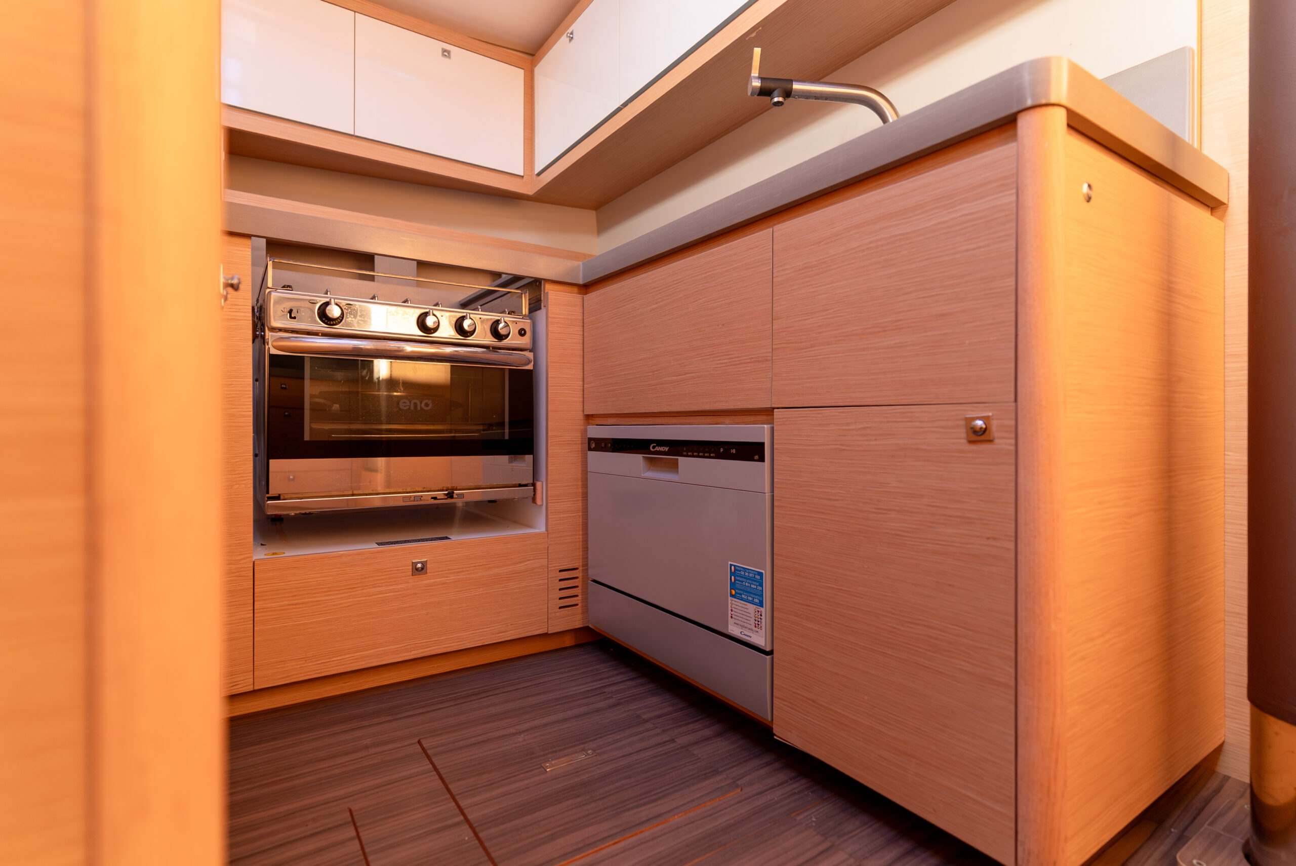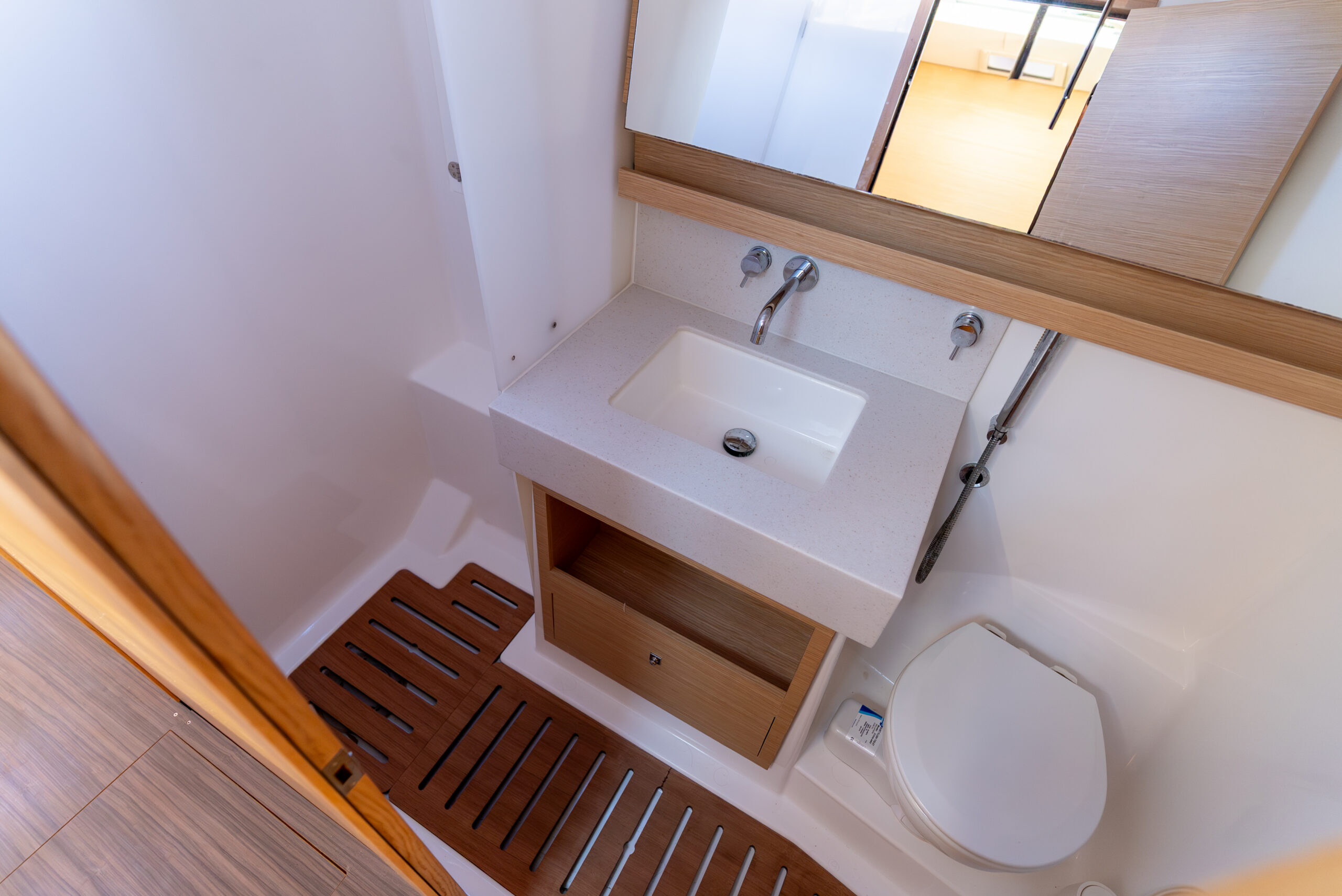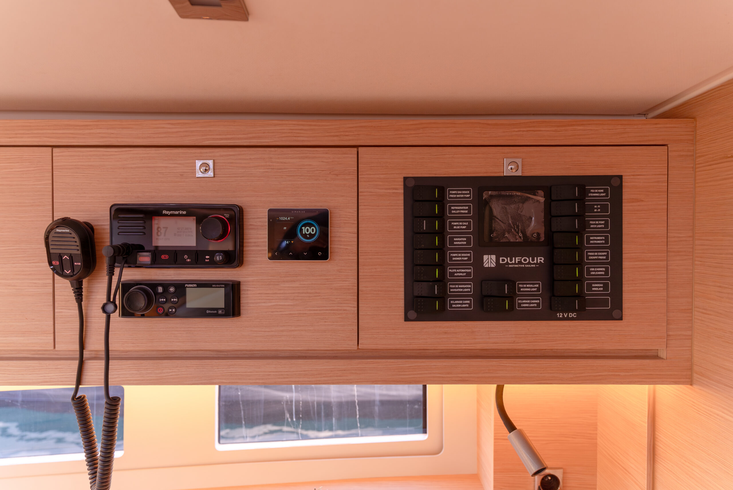 Energy and onboard systems are designed for true independence. A comprehensive Victron Energy setup includes a 5000W inverter charger, solar integration and advanced monitoring, supported by a Fischer Panda generator and an unused Spectra watermaker. Navigation is equally well equipped with a full Raymarine suite including chartplotter, radar, AIS and autopilot.