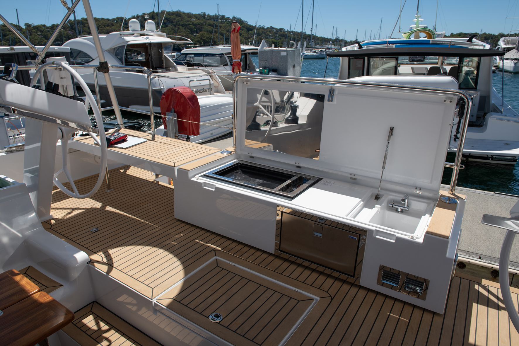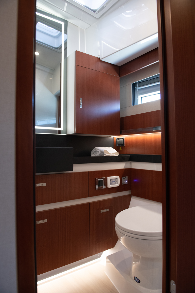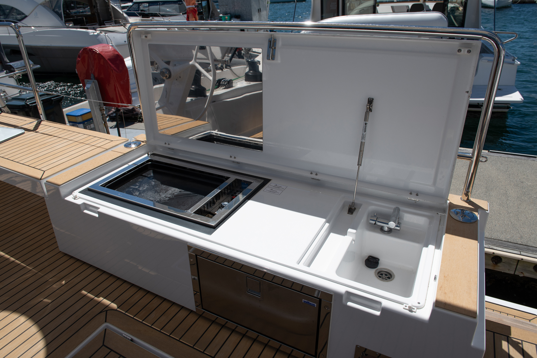 Below deck, Pauline offers a tranquil retreat for extended cruising or elegant coastal living. The luxurious owner’s suite and two guest cabins each feature private ensuite bathrooms and separate showers, ensuring every guest enjoys comfort and privacy. The craftsmanship and attention to detail are evident throughout, from the premium finishes to the intelligent use of space that enhances both functionality and flow.