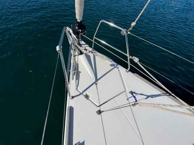 This is our fourth season – commissioning and provisioning NOETA are becoming second nature – so a week after our arrival, the Sahara dust acid-washed off, stainless gleaming, rigging sorted, new props fitted, freezers full, herb garden planted, we launched – only to snap a mooring line (not ours) as the Captain discovered that having clockwise and anticlockwise props do not work on a catamaran – Volvo Athens had sent a wrong (clockwise) prop, so out we came, new props off, old props on, back we went and we waited’¦ But hey there were still a few things to do which are best done in the water – put genoa back up, commission watermaker, update electronics’¦. and it was lovely to be able to get up in the morning and dive into the big blue bath.
