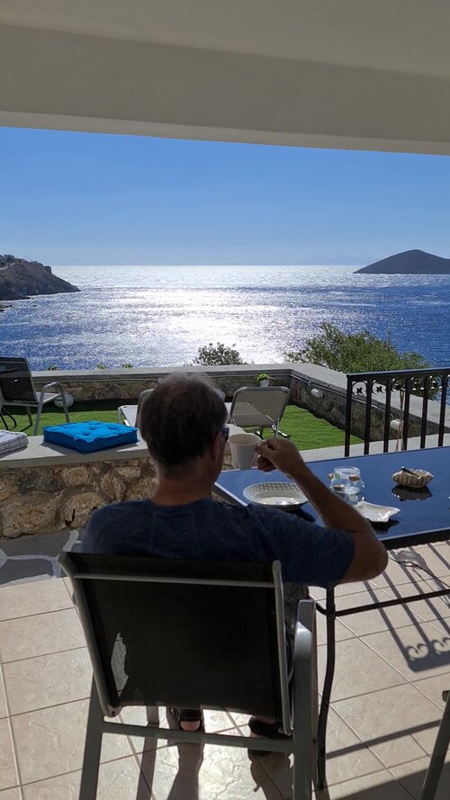 We had given ourselves a week to get everything shipshape and for the boatyard to finish all those last minute planned (and unplanned) jobs and treated ourselves to four nights at Aegean Blue – oh the luxury of not having to climb up and down a 2.5 metre ladder and trek across the dusty boatyard to shower and pee. Aegean Blue is superb, looking down at Panteli fishing village and Vromolithos, out across the sea to Turkey, a hot shower, comfortable bed and food treats awaiting – Kalliopi is the hostess with the mostess.