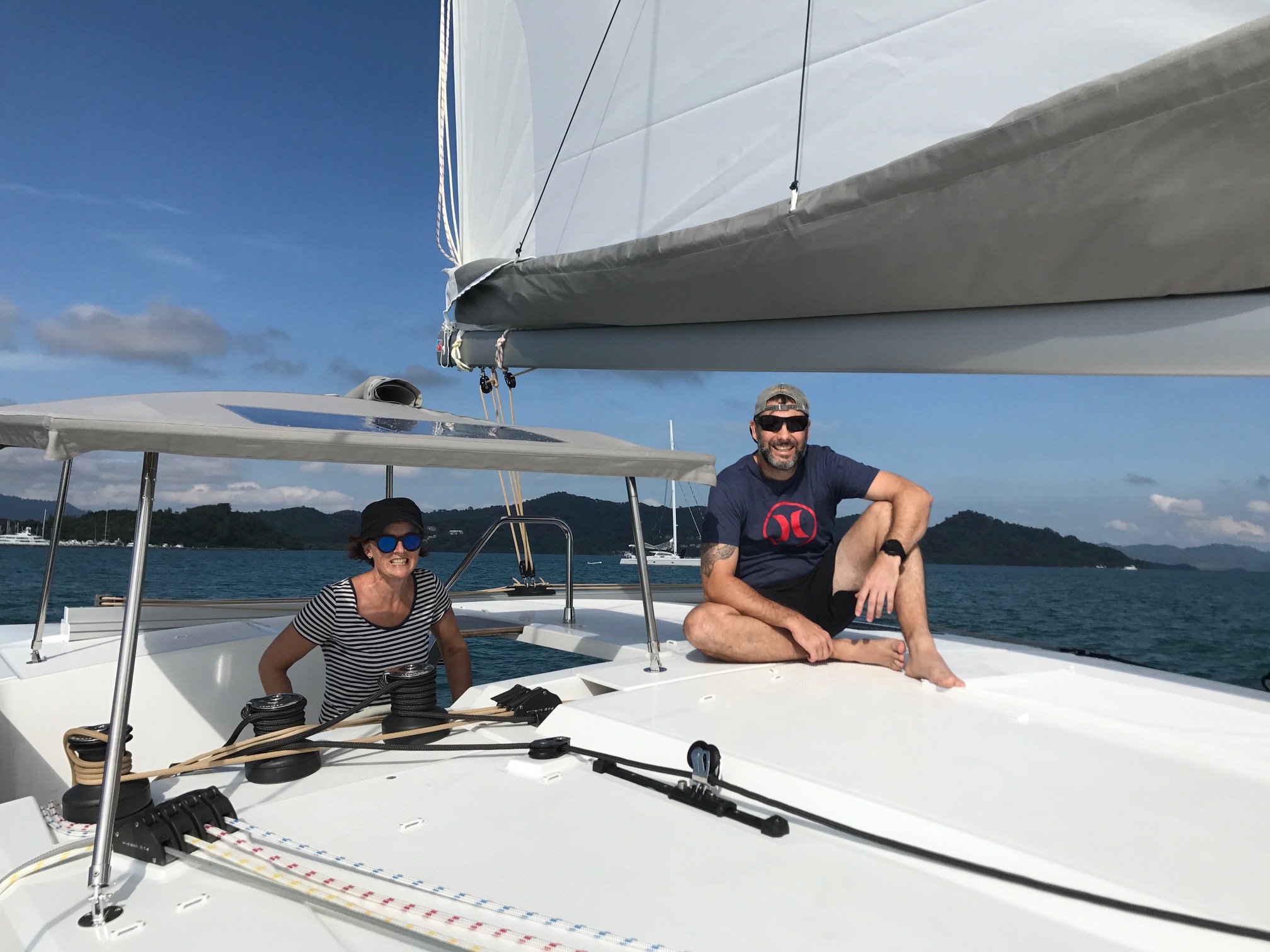 A big thanks to Andrew de Bruin who supported us through the whole process from investigation to purchase to preparation and finally, the hand-over. His knowledge and expertise coupled with his calm demeanor made the entire journey stress free and seamless. Also a big thanks to the crew from Happy Hut. They showed a high level of professionalism and responsibility the whole journey. They even included us in all their meals so we had amazing Thai food the whole way to Singapore. We could not have asked for a better shakedown cruise and team to do it with.