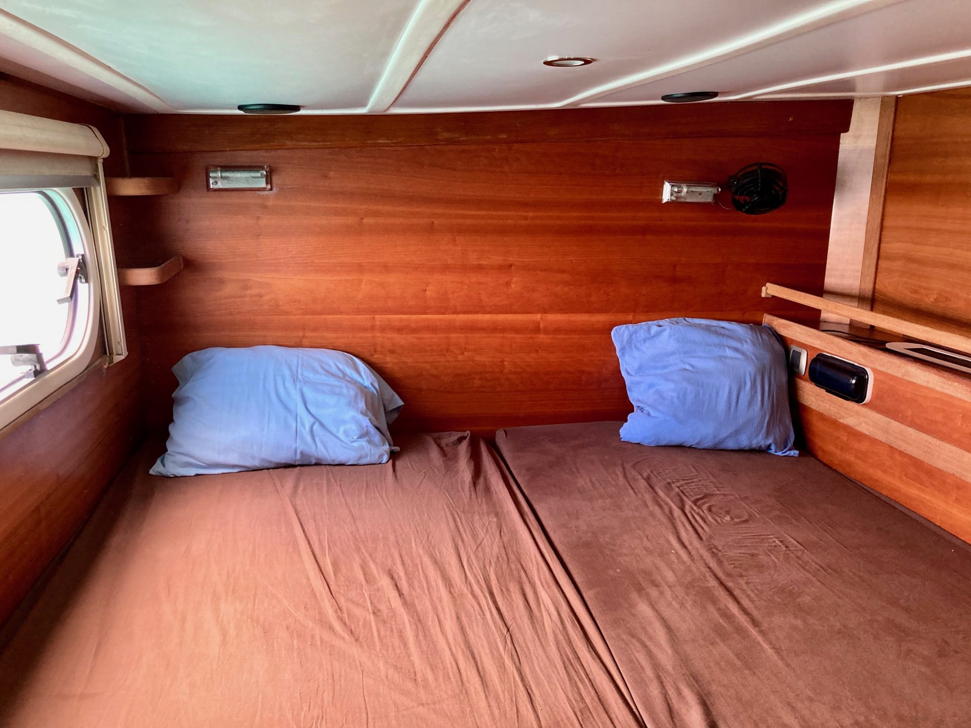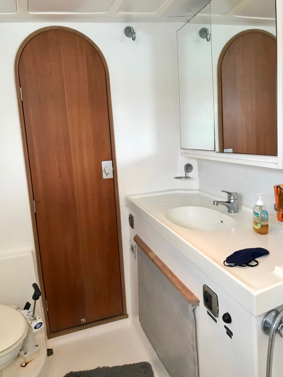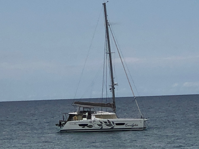 It got interesting coming out of the canal. You tie up and go and pay. We were all set to come aside and my partner would throw the line around the bollard. We have done this before. She throws the line but fails to hold onto the end. Panic ensues. Someone grabs the line and throws it back but I can’t keep the boat in position. We get blown off, I miss hitting our buddy boat by inches. By this time I am in the middle of the entrance of the canal and blocking it for the boats heading in. I do a 360 degree turn, catamarans are good like that, I approach the concrete dock once more. I can hear on the VHF the canal authority telling the boats entering to wait, obviously for me! By this time I have our 2 friends waiting for the lines and we tie up. For sale, 1 catamaran.