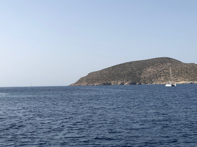 Korfos was the next stop, then Epihadros both lovely little harbours. Off then to Kythnos where we received a warning on the phone that it was a Covid hot spot. We didn’t go ashore.