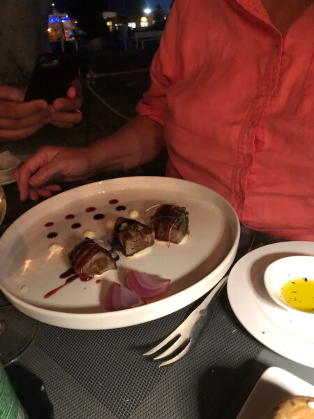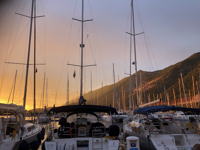 The very first night in KaÅŸ, we went out for dinner with Boomerang, our buddy boat. A celebration of an awesome achievement. We had a lovely night and being of a certain age it was not late when we went back to the boat.