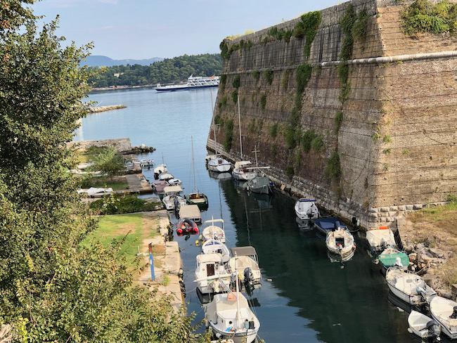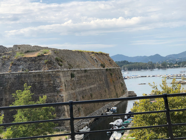Oh my goodness, Corfu, how I love you, but not all your Greek paperwork. We spent 2 nights in Mandraki Marina. The marina is at the base of the 15th century Venetian Fortress and is a short walk into the town through the fortress. Here are beautiful pastel-coloured Venetian buildings and narrow cobblestone streets where you could wander for hours.