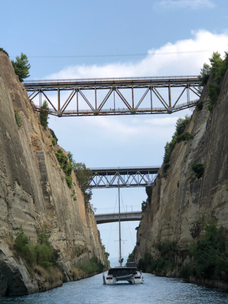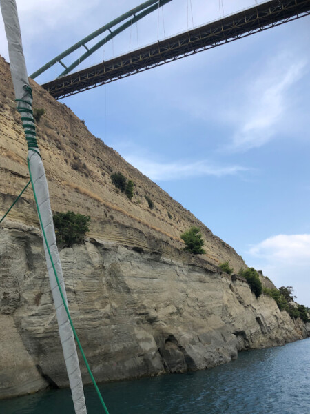 The Corinth Canal connects the Gulf of Corinth in the Ionian Sea with the Saronic Gulf in the Aegean Sea. Apparently it was started by Emperor Nero but wasn’t finished until the mid 1800’s but don’t quote me. I can tell you the 4 miles cost us 270€ to go through. It was quite amazing and very narrow and I used the autopilot, as it is way more accurate than my helming.