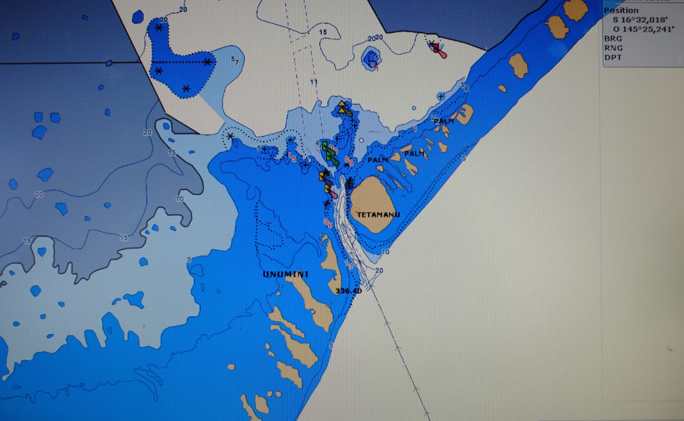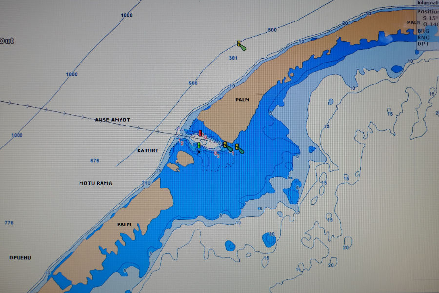 Once inside a lagoon, the navigation buoys (when present) are generally accurate but one should keep a keen eye out for coral heads. Best is to move about between 10am and 3pm to ensure the best visibility.